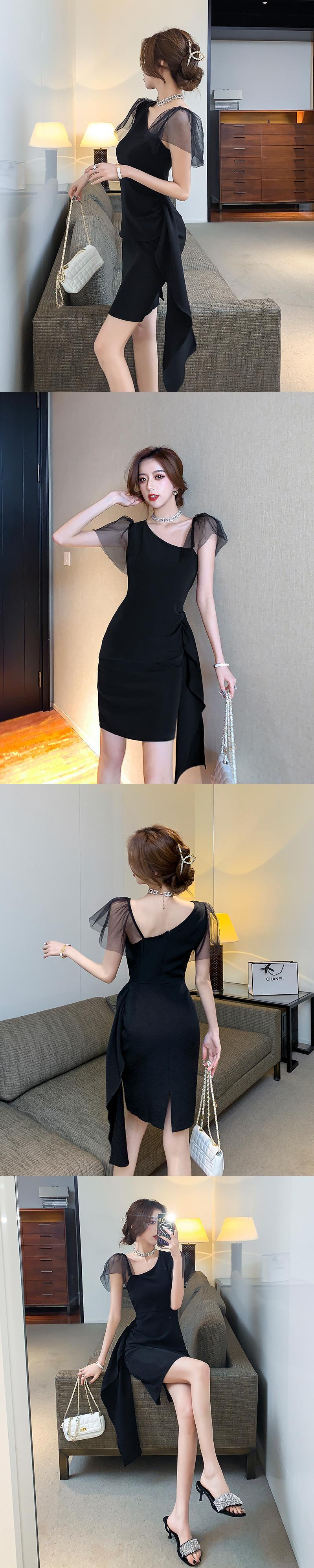 フランスの小さなドレスは通常、短い小さな黒いドレス、ハイエンドのセンス、薄い気質、セクシーなスラントネックのオフショルダードレスと一緒に着ることができます micat65461127901
