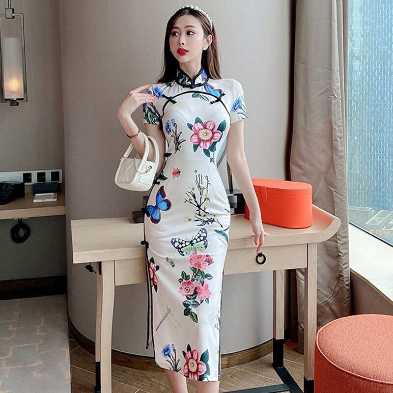 チャイナドレス2022新しいハイエンド気質エレガントなレトロ共和国スタイルの改善された印刷スリムミドル丈ドレス micat57162435444