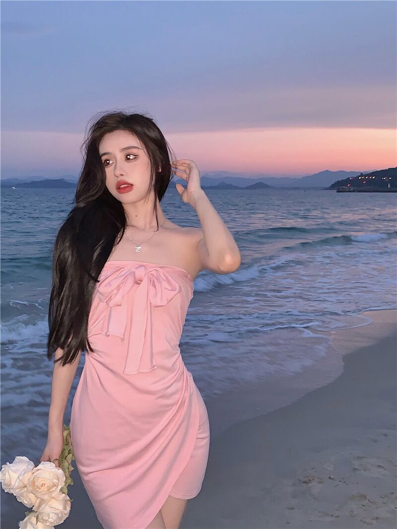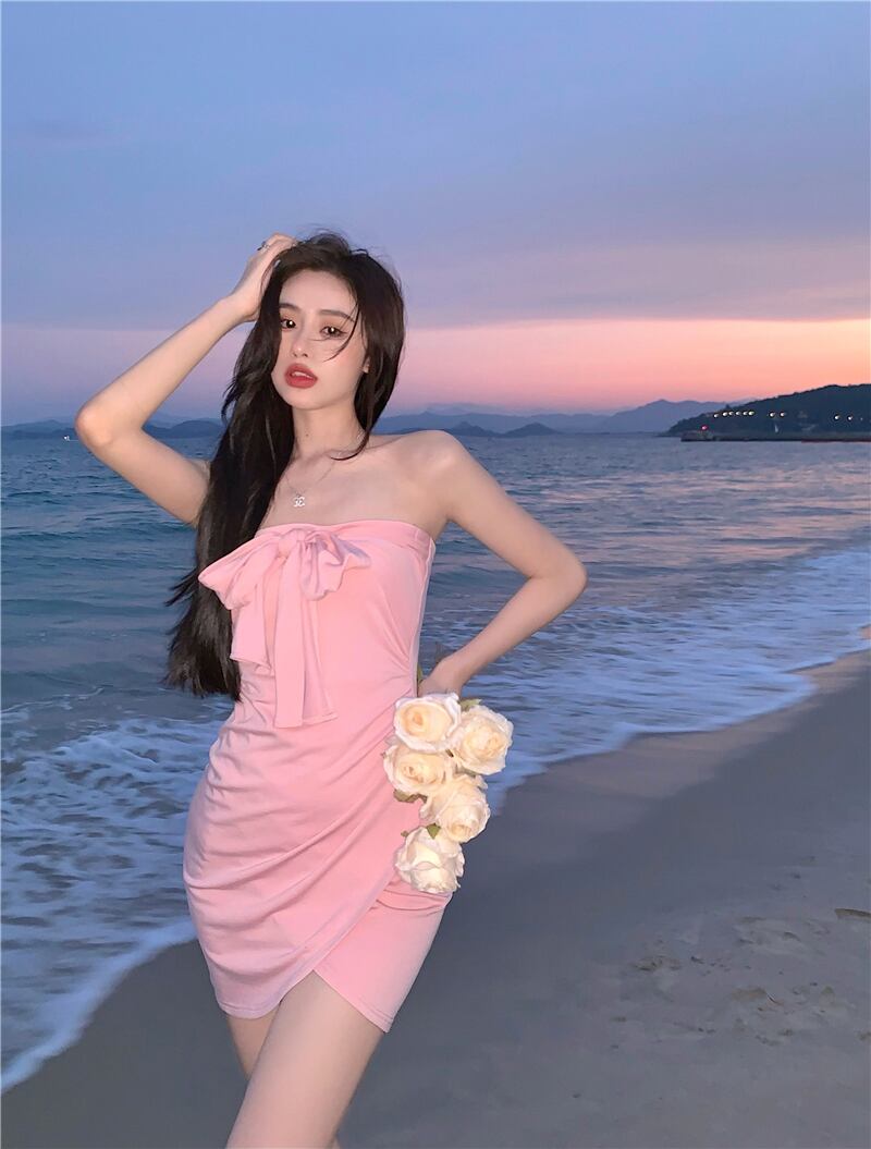 2022年人気の婦人服新しい海辺の休日甘くて純粋な欲望の女の子セクシーなチューブトップドレスを着るさまざまな方法 micat40695596369