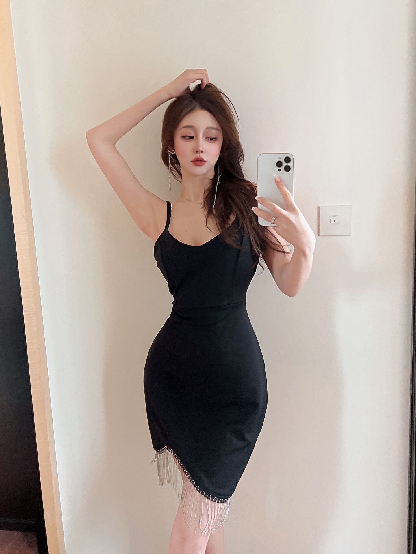 黒のリトルドレスショートナイトクラブ女性のナイトクラブハイエンド気質telセクシーなVネックサスペンダードレス micat27078915461