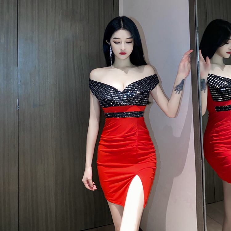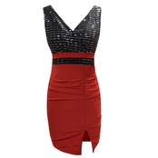 ナイトクラブの女性の夜の作業服スパークリングスパンコールステッチセクシーなローカットディープVネックノースリーブドレス micat5794962716