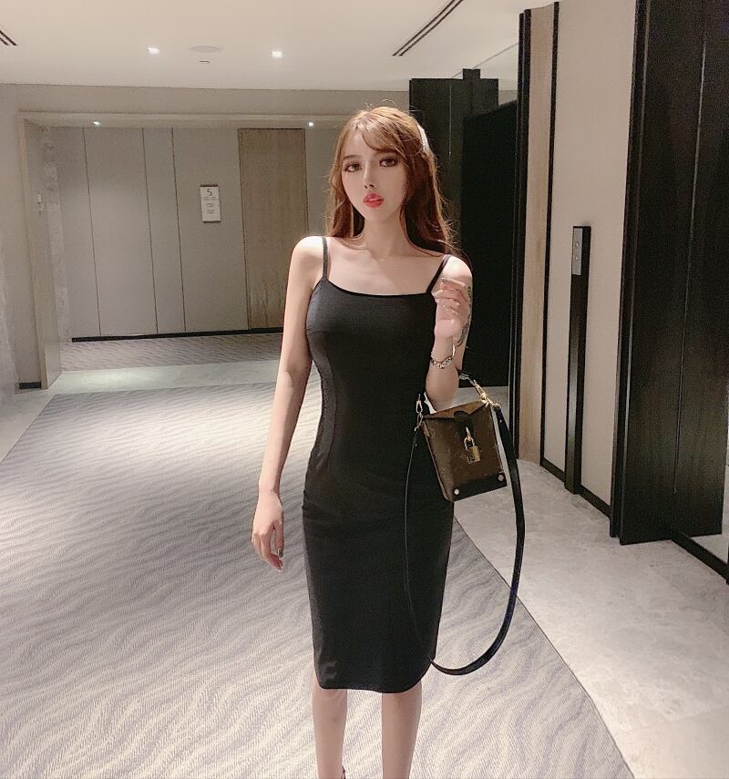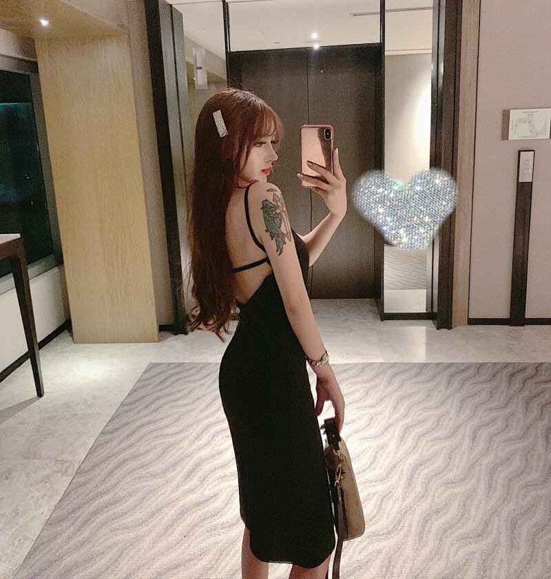 ナイトクラブの女性のイブニングドレスの宴会の気質セクシーな背中の開いたスリムフィットスリムミドル丈のサスペンダードレス micat57289015983