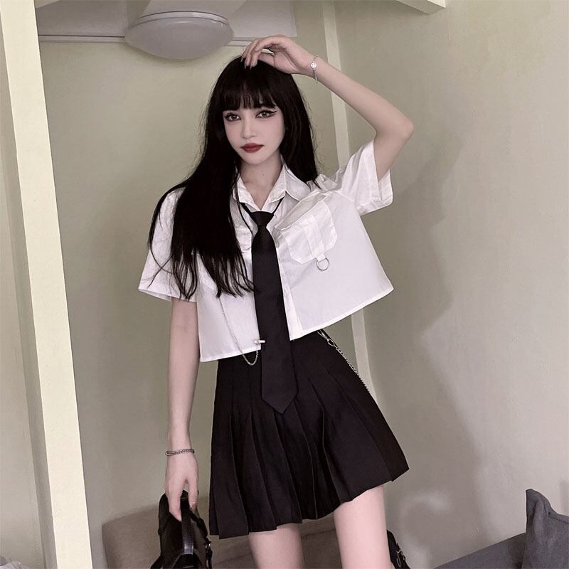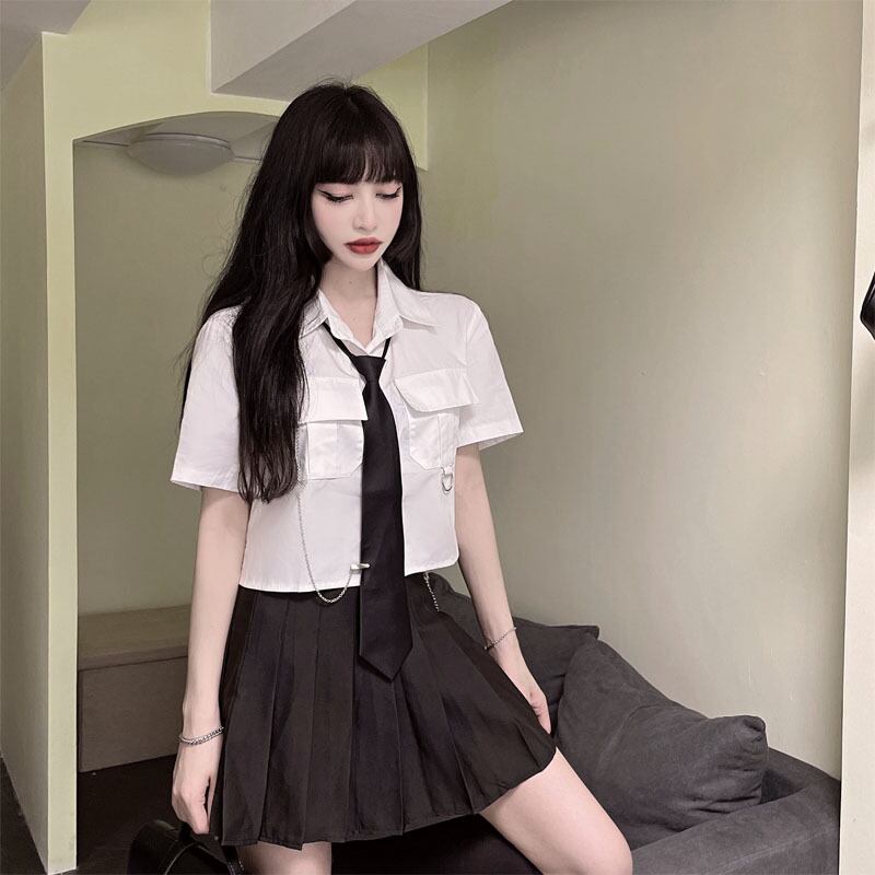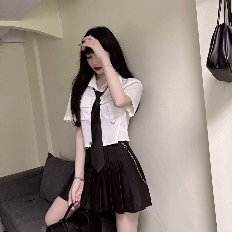 JKユニムスーツレディースサマーダークルースショートネクタイホワイトシャツ+プリーツスカートツーピースセット micat22563311372