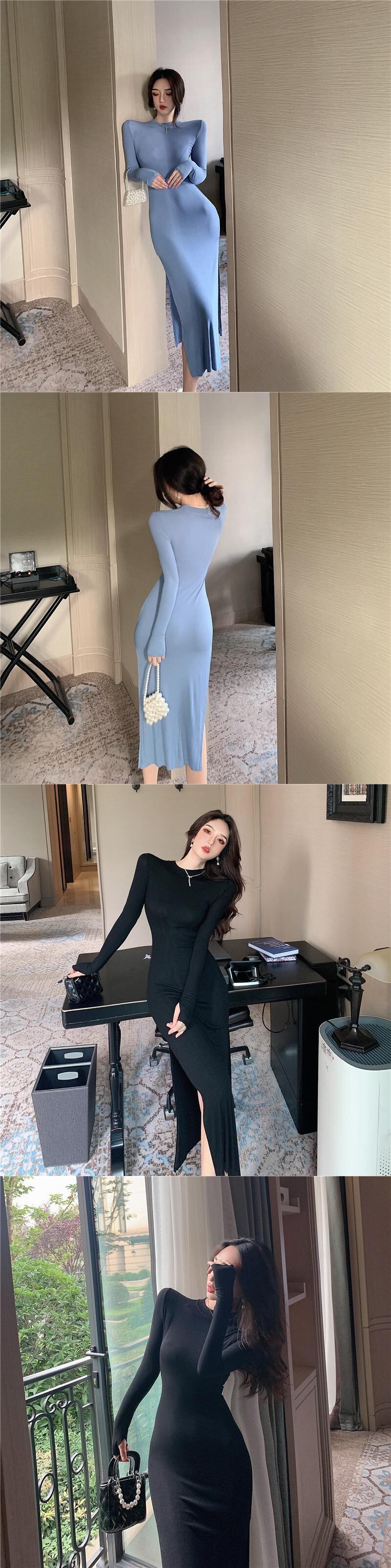 インナーボトミングロングスカート2021年初秋新作フェミニン気質スリム無地セクシーハイスリットワンピース micat50251563094