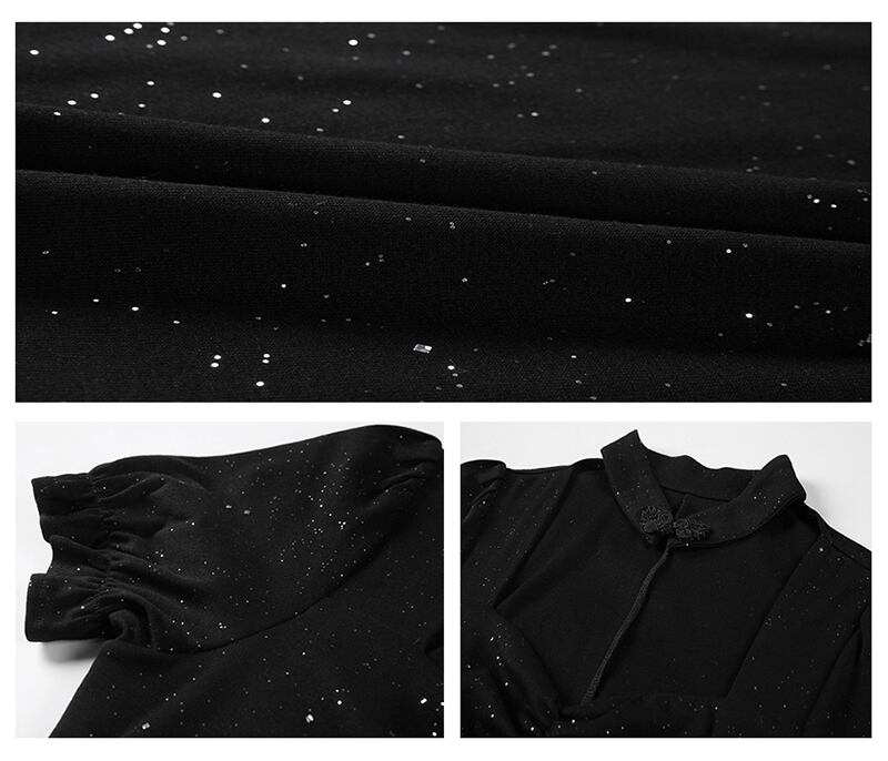 フランスの小さなドレスショートブラック光沢のあるパーティー気質セクシーなスクエアネックパフスリーブヒップドレス micat65391952692