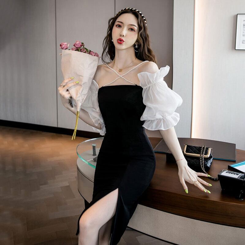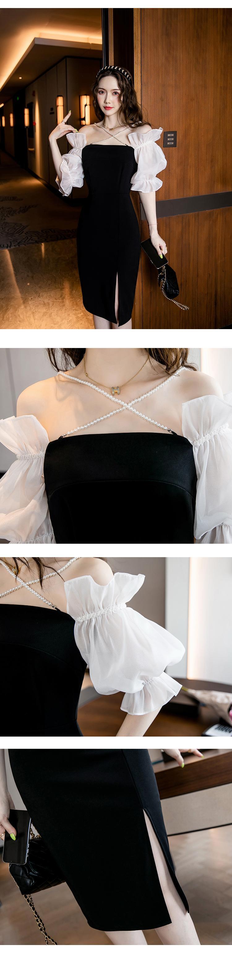 フランスのイブニングドレス、セレブスタイルのスカート、ハイエンドの夏のセクシーなワンショルダーミドル丈ランタンスリーブドレス micat42408816758