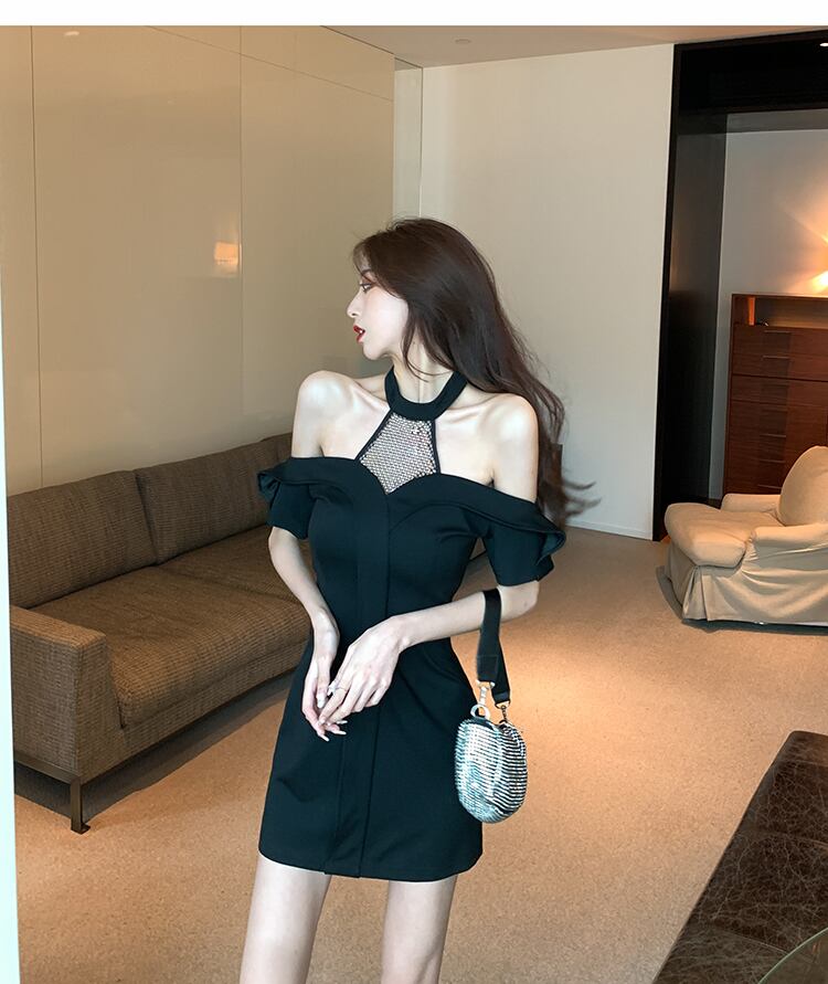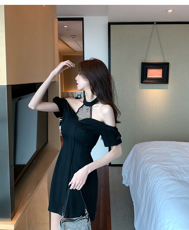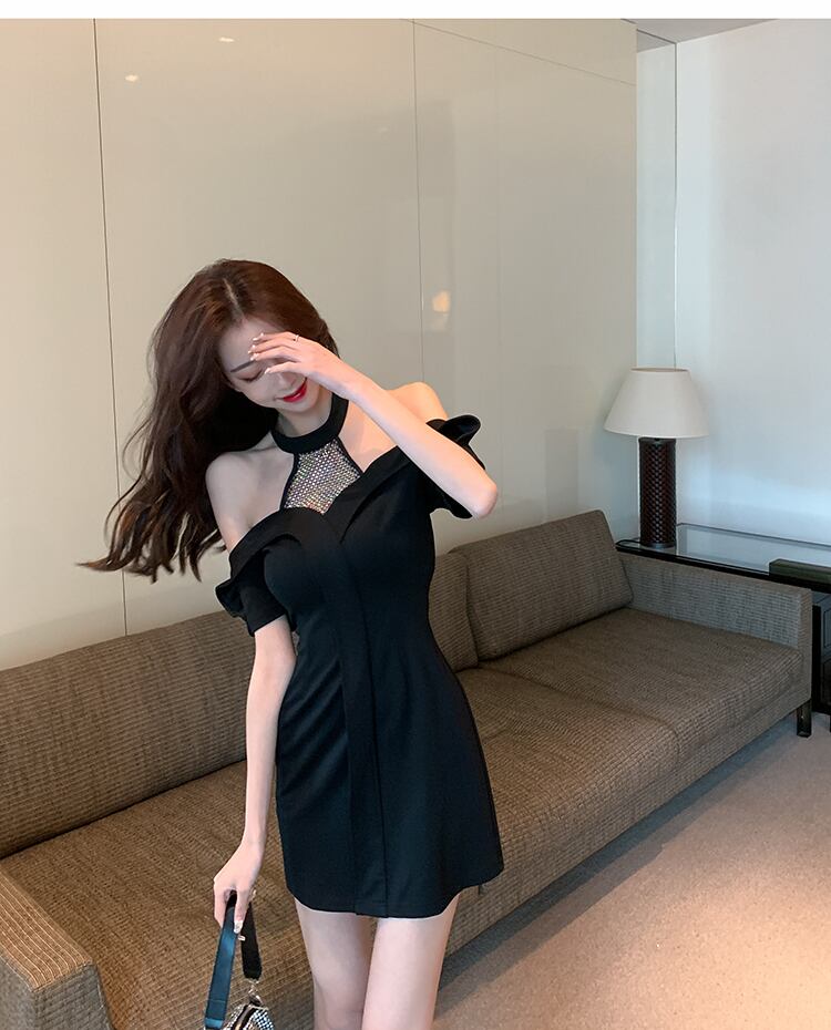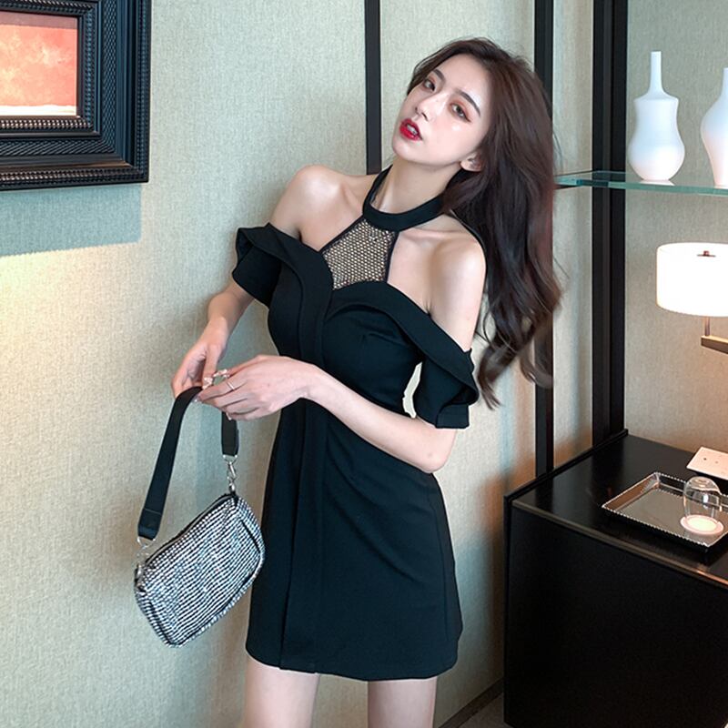 フランスの小さなドレス黒の短いナイトクラブの女性のバーディスコ気質セクシーなオフショルダーホルターネックドレス micat23711535966