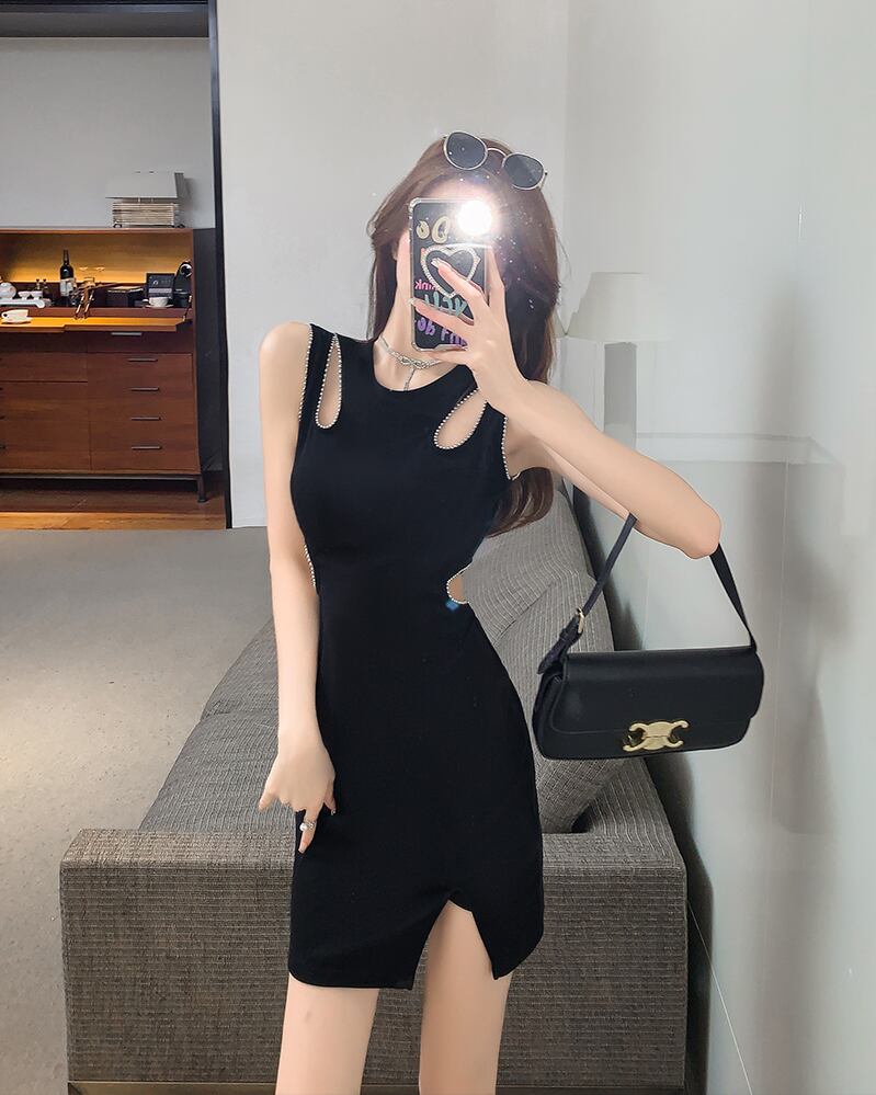 ナイトクラブディスコ女性の夏の夜の店セクシーな中空の小さな黒いドレス半ノースリーブヒップドレス micat37838857265