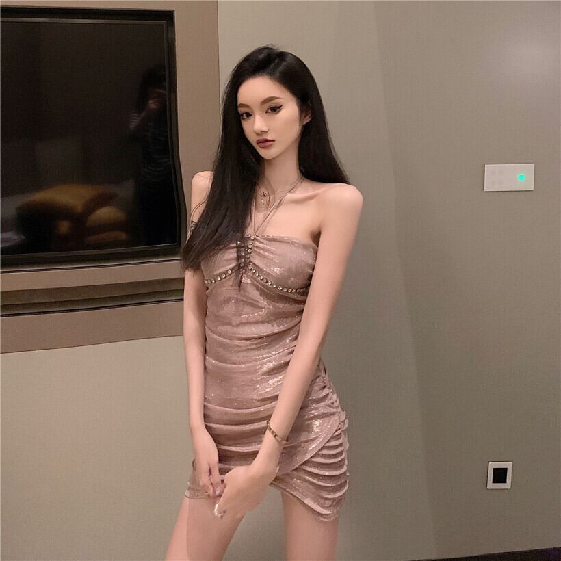 ナイトクラブ女性のナイトクラブ小さなドレスショートドレス光沢のある気質セクシーなチューブトップホルタードレス micat10582056422