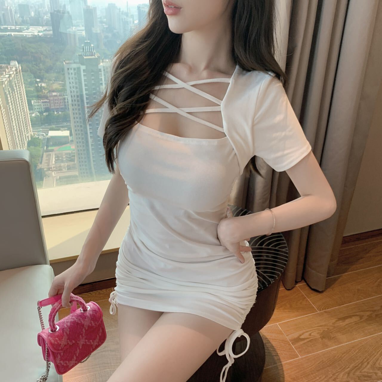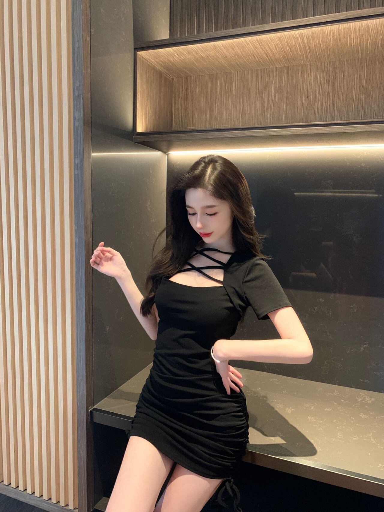 ナイトクラブの女性の作業服作業服ライブ放送アンカー服気質スリムセクシーなスクエアネックドレス micat85779800648
