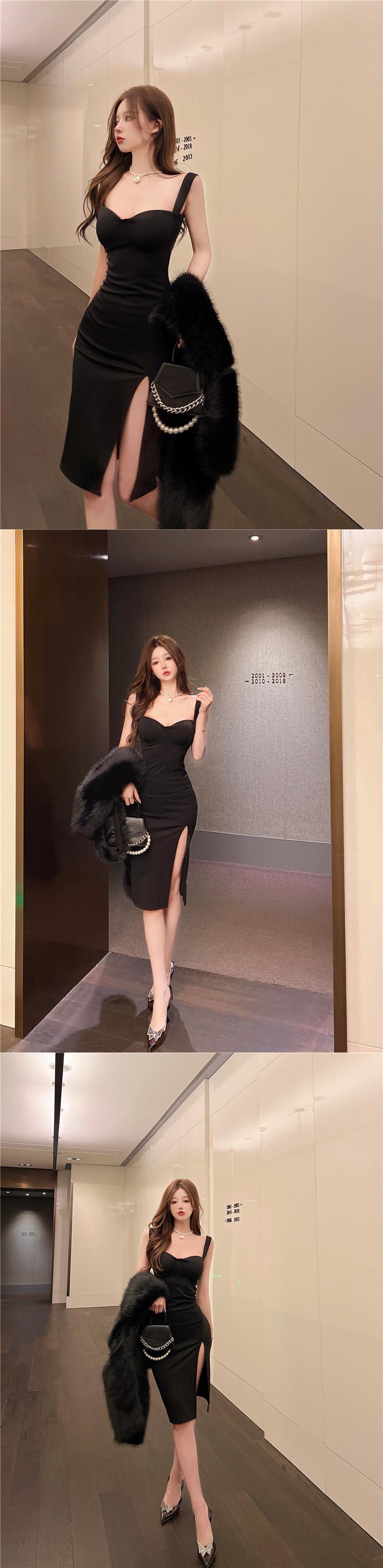 イブニングドレスナイトクラブレディースナイトクラブハイエンドセクシーローカットVネックミドル丈チューブトップサスペンダードレス micat71834308705