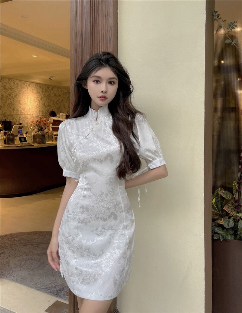 ホワイトチャイナドレス2022新しい若いスタイルの気質ハイエンドレトロジャカードデイリー改善ドレス micat62712616658