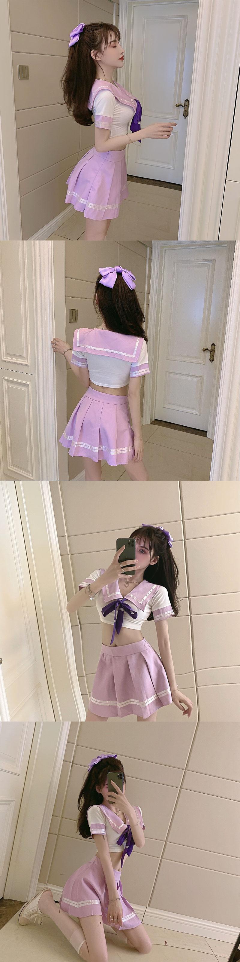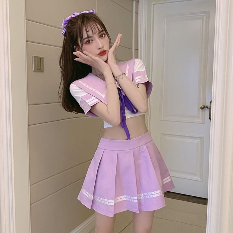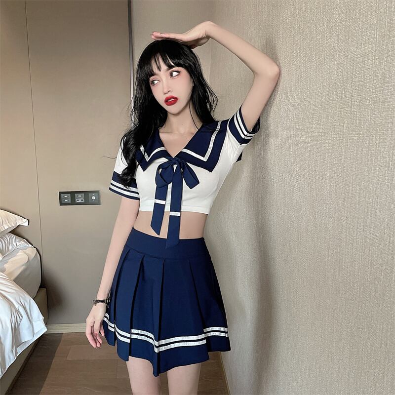 jkユニムスーツナイトクラブレディースウェアピュアディレッションネイビーセクシーショートへそトップ+プリーツショートスカート micat38031860023