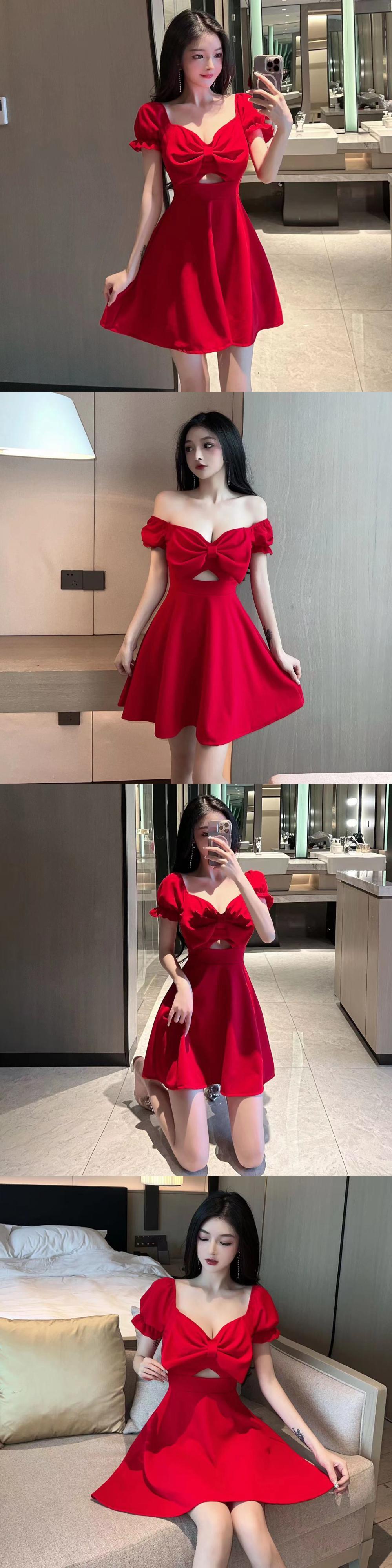 ナイトクラブの女性の作業服は、薄い気質のセクシーな作業服のローカットVネックフレンチパフスリーブドレスを示しています micat9352026491