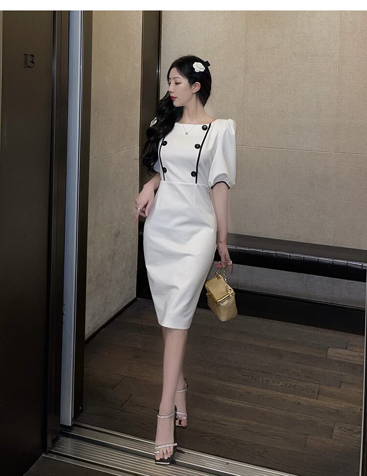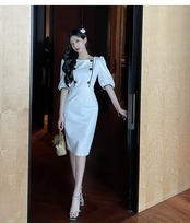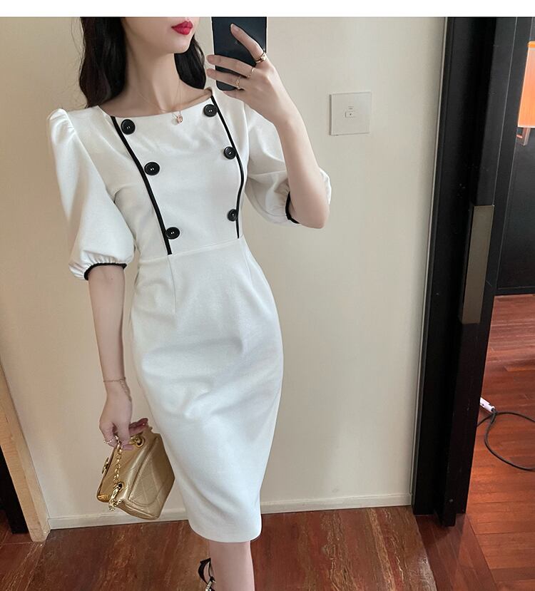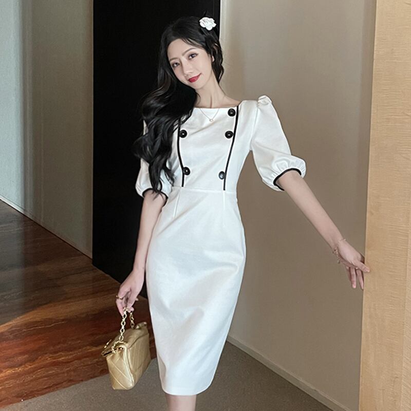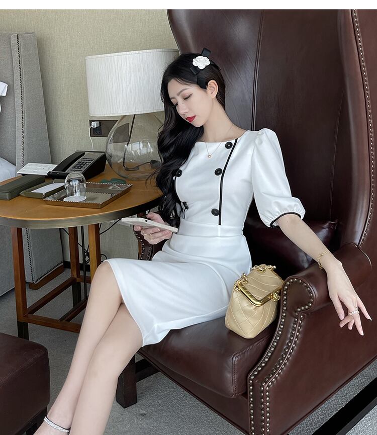 軽い成熟した婦人服成熟したロイヤルシスター夏フランスのレトロなヘップバーンスタイルの職場の袖スクエアカラーパフスリーブドレス micat16682661270