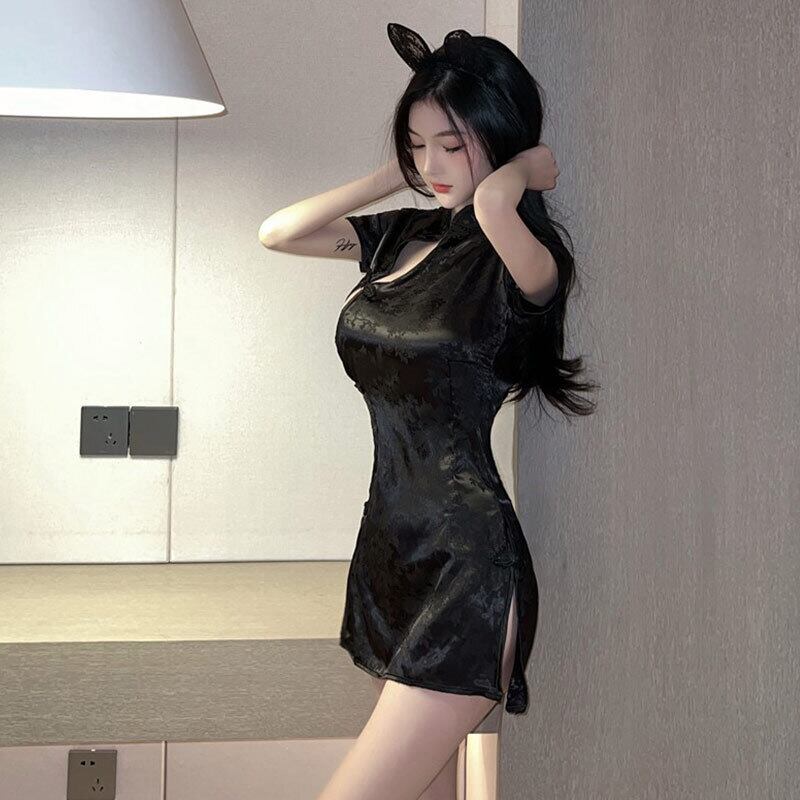 ナイトクラブの女性の技術者の作業服セクシーな若いセクシーなスプリットブラックショート改良チャイナドレス micat19668340390