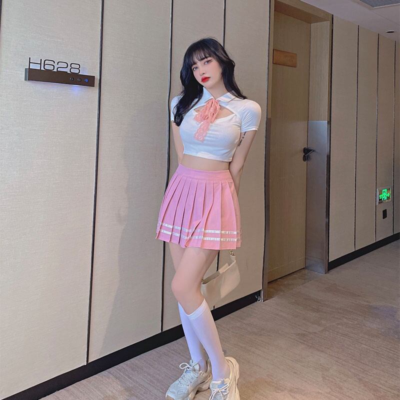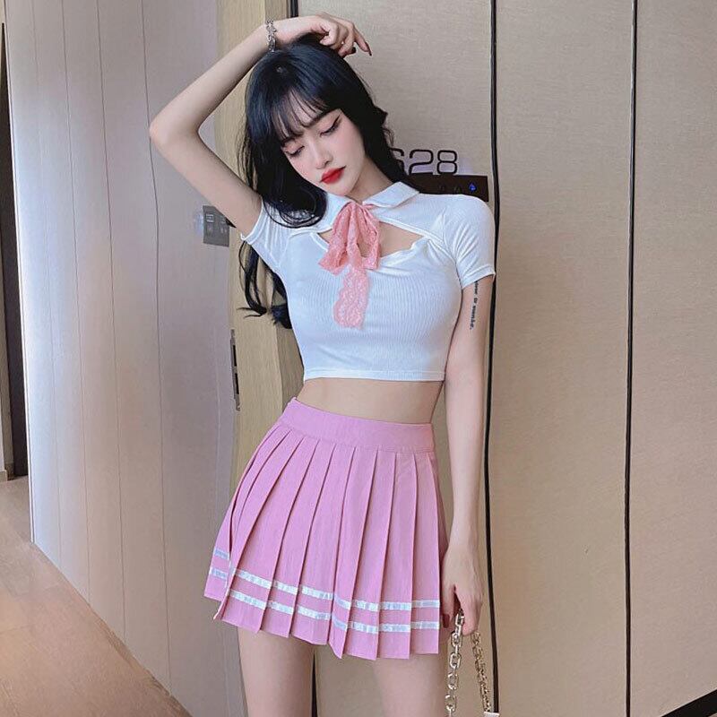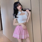ナイトクラブの女性の作業服ユニムスーツの気質年齢を減らすセクシーなショートトッププリーツスカートツーピースセット micat43898600925