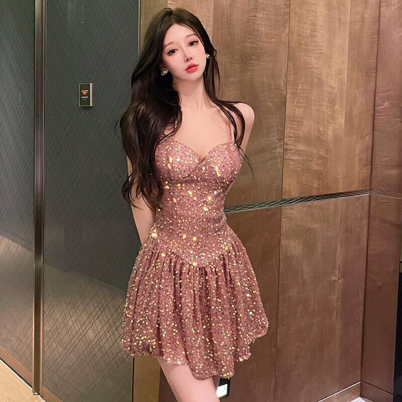 小さなセレモニードレス高級パーティーナイトショップ婦人服スパークリングスパンコールウエストスリムパフチューブトップサスペンダードレス micat51316293776