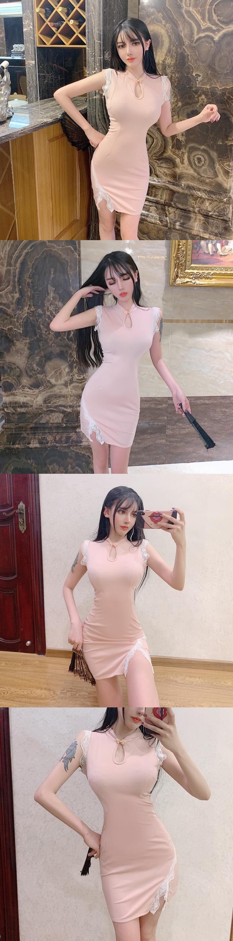 ライブ服気質レトロ女性アンカーレースセクシースリムショートチャイナドレス改良版ドレス micat64626328877