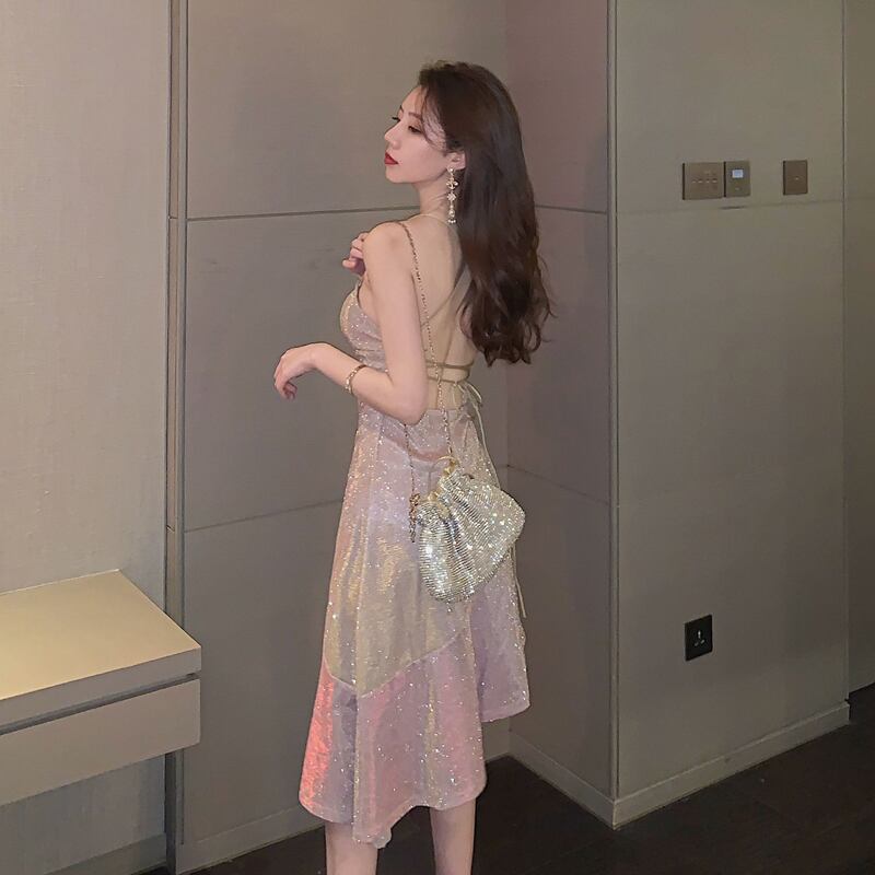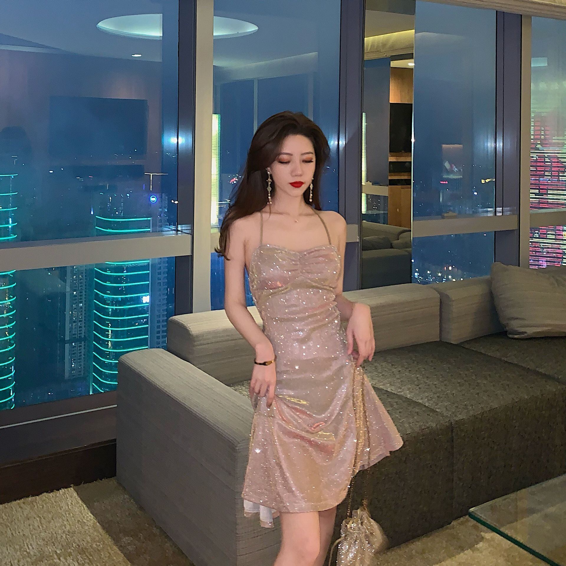 ナイトクラブバージャンピングディスクスパークリングイブニングドレス気質バックレスチューブトップサスペンダースカートナイトクラブセクシードレス micat14009868402