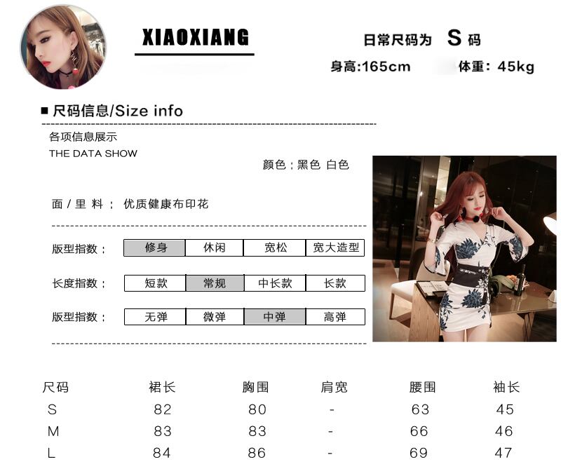 ナイトクラブの夜の作業服セクシーなクロスVネックフレアスリーブレトロプリントese着物ドレス micat4946218280