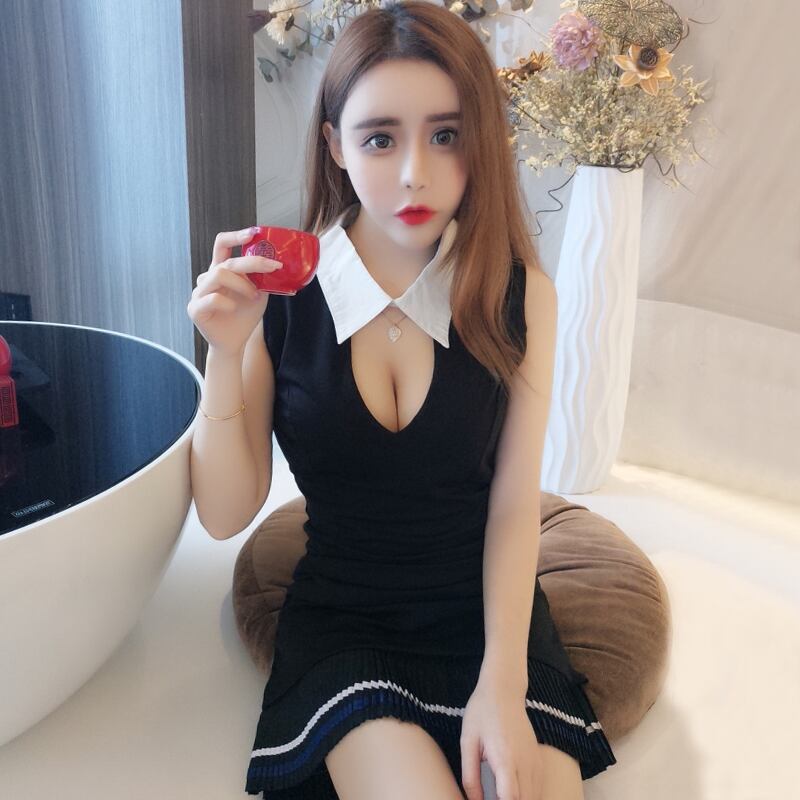 ktvベルショートスカートナイトフィールド作業服バー女子学生セクシーチェスト中空シャツ襟ノースリーブドレス micat75504269339