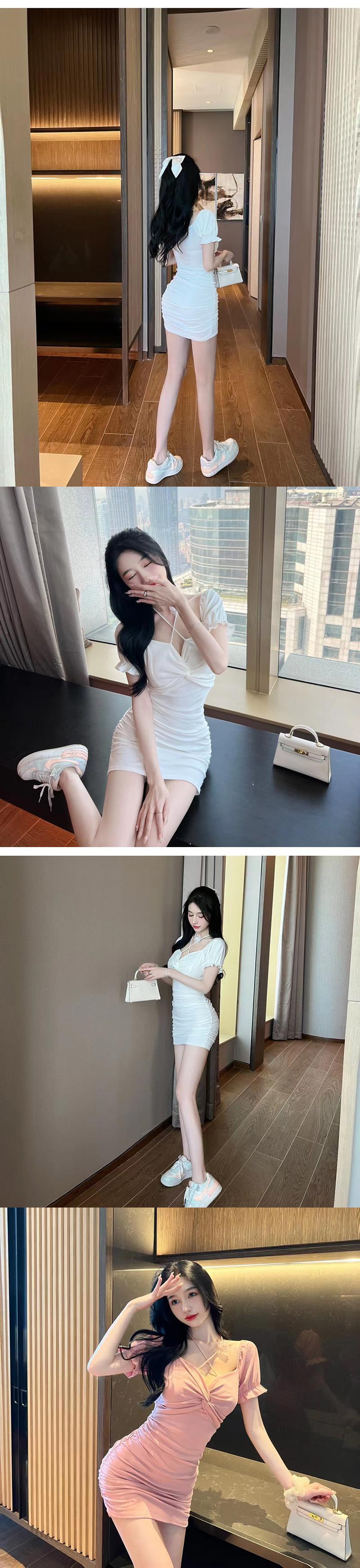 ナイトクラブレディースナイトクラブフレンチスリム気質セクシーローカットディープVネックパフスリーブホルタードレス micat77811809388