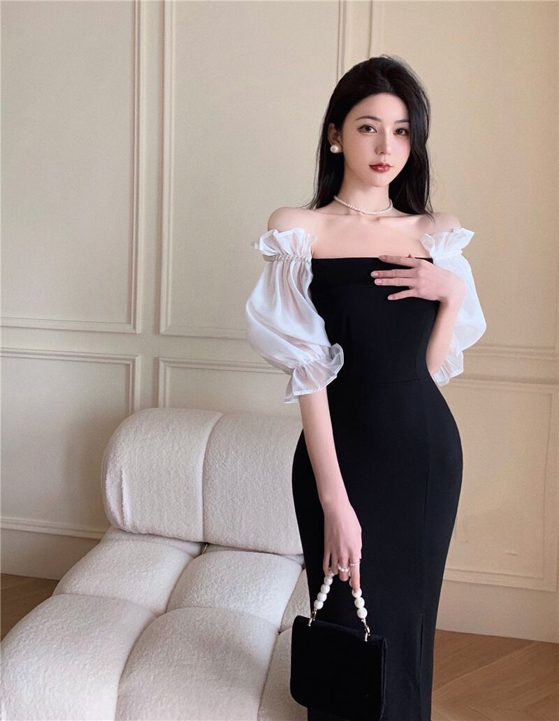 ヘップバーンスタイルのイブニングドレススカート女性有名人気質ライトラグジュアリーニッチハイエンドフレンチセクシーワンショルダー見事なドレス micat37334788590