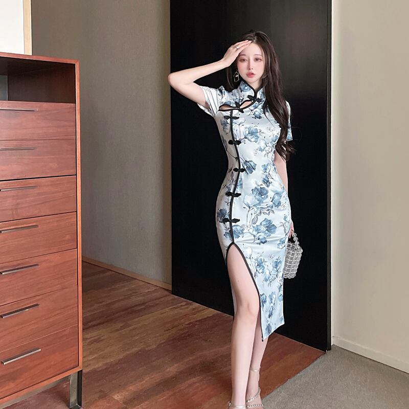 改良された改良されたチャイナドレス2022新しい若いレトロ共和国スタイルのセクシーなハイスリットミドル丈ドレス micat14495260562