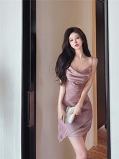フランスの小さなドレススカートライトラグジュアリーニッチハイエンドショートバンケット気質セクシーなスイングカラーセクシーなサスペンダードレス micat17266493256