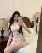 改良されたチャイナドレス若い夏の小さなファッション毎日セクシーなショートバッグヒップスリットドレス micat75494961053
