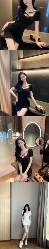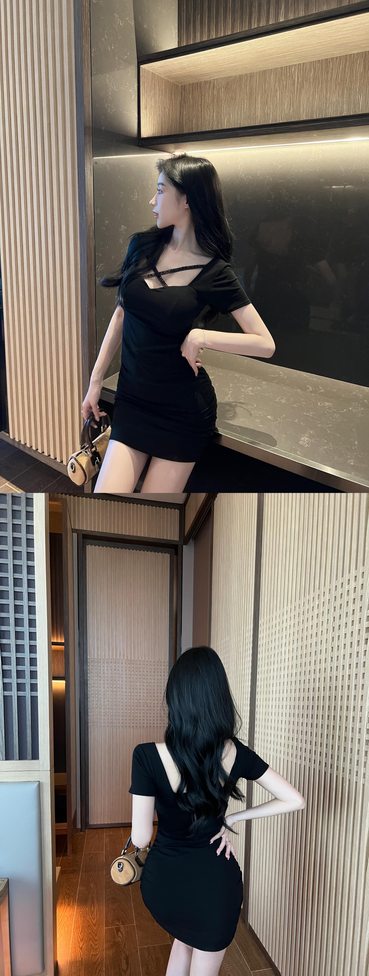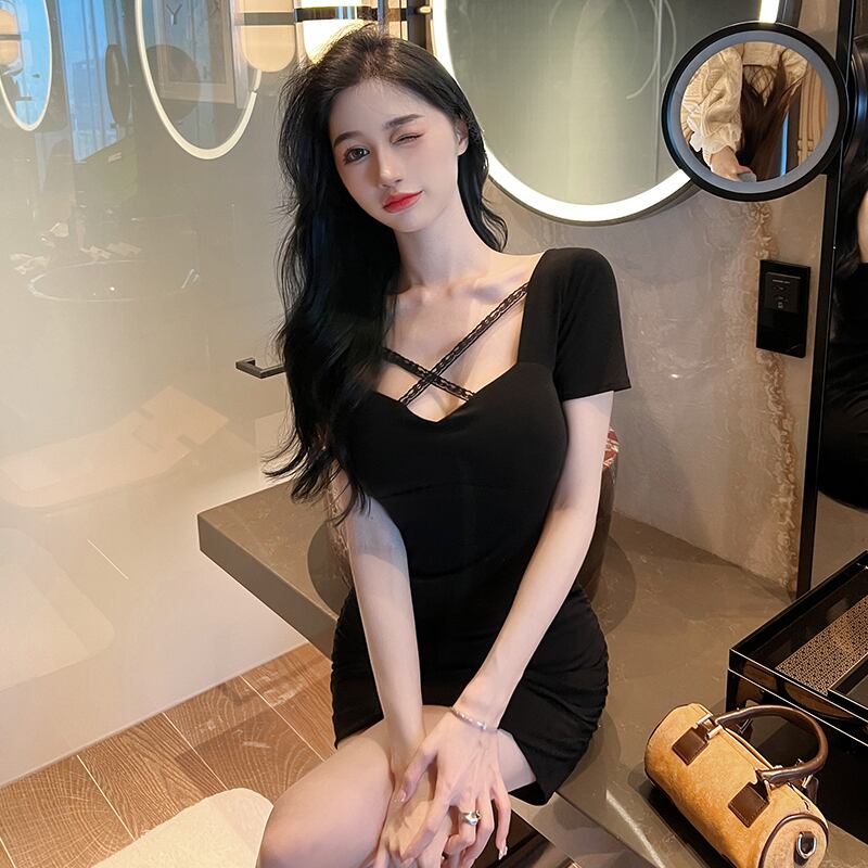 ナイトクラブ婦人服純粋な欲望スタイルナイトクラブ気質セクシーなローカットスクエアカラースリムバッグヒップ半袖ドレス micat11349001405