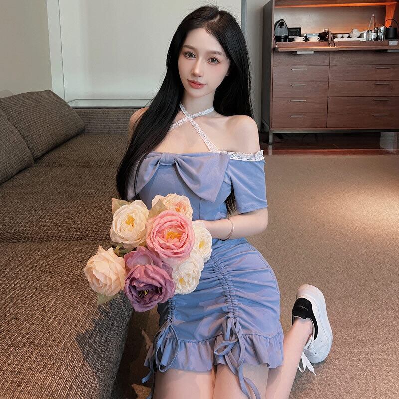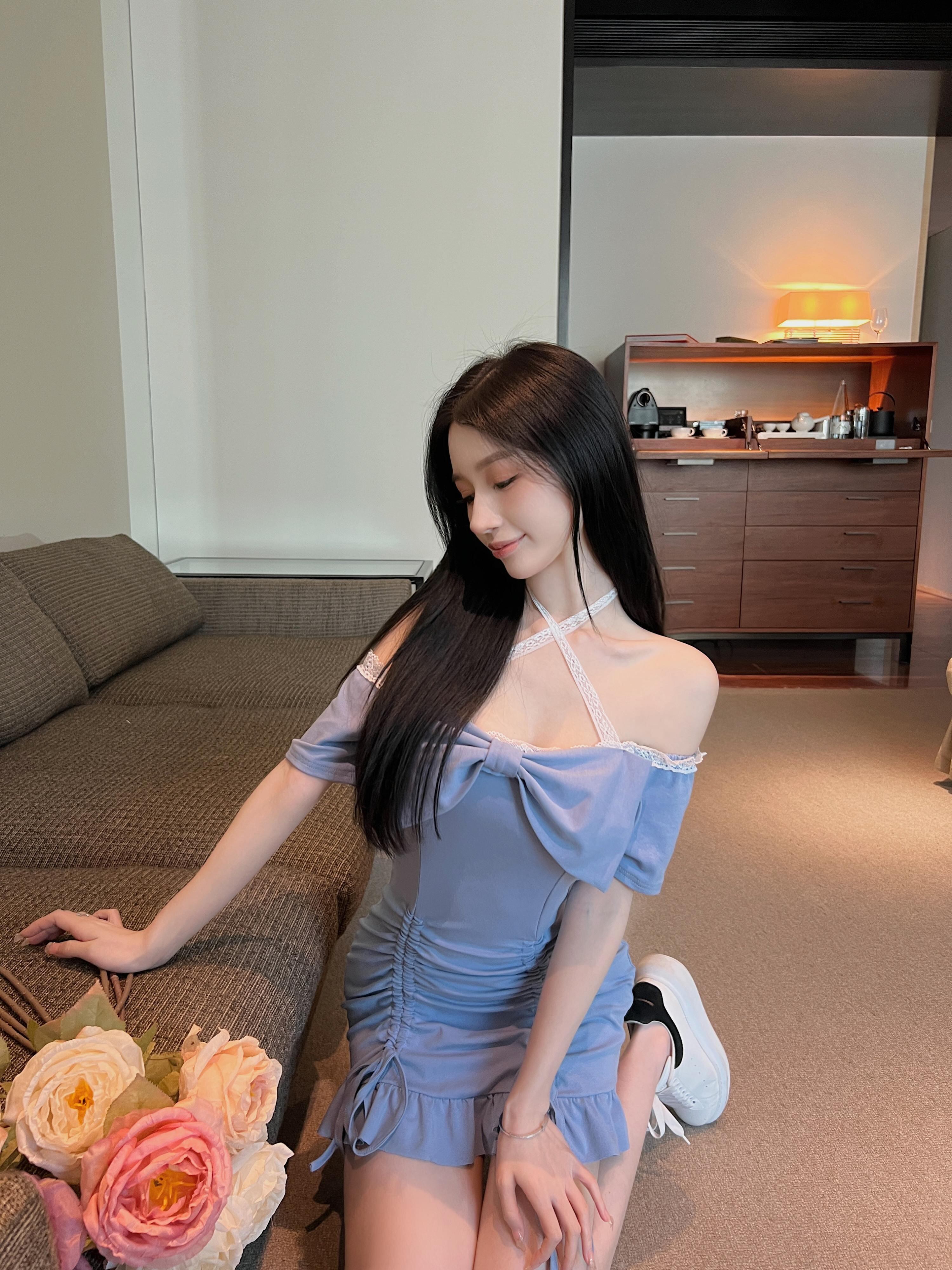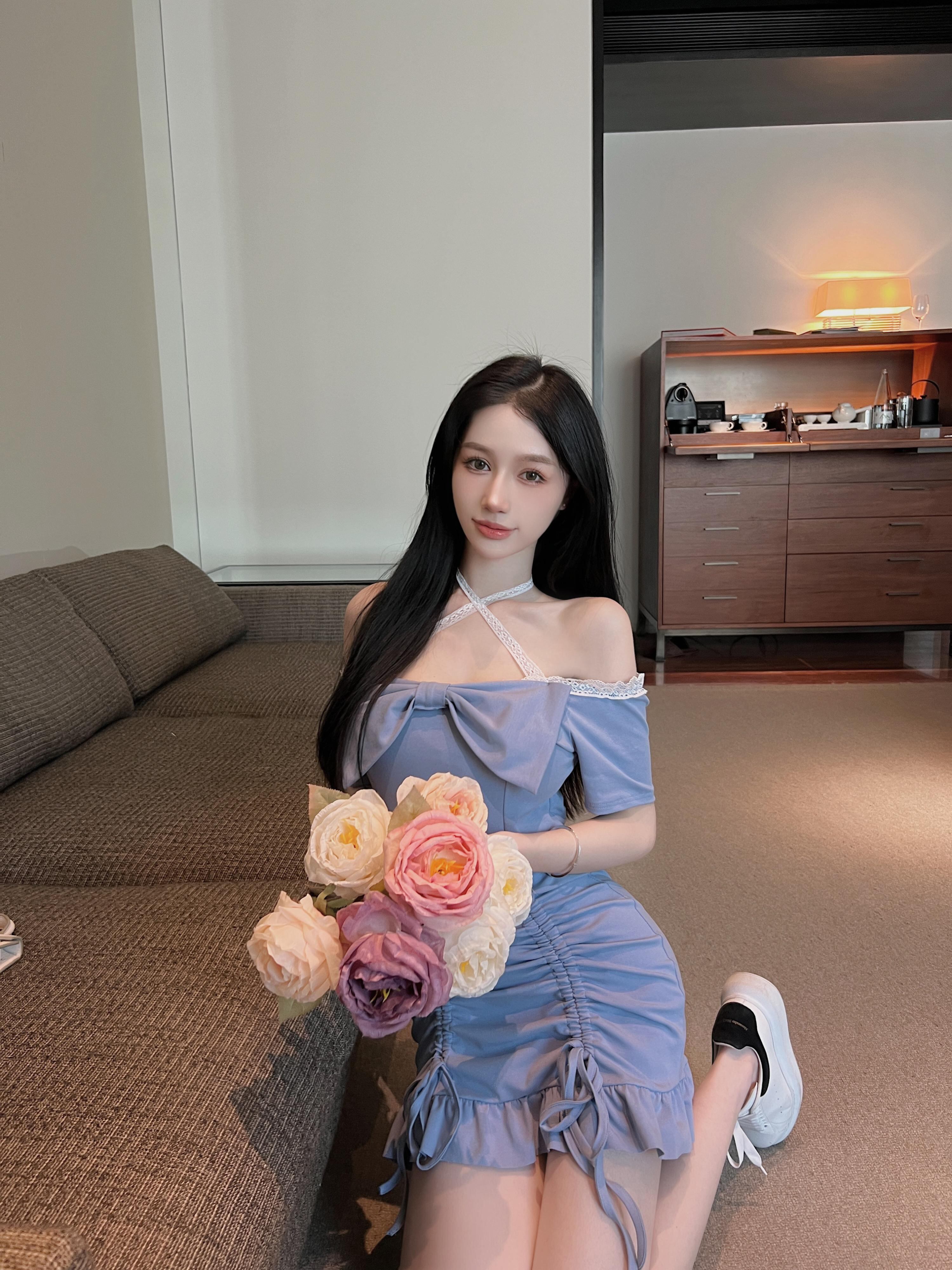 生放送の服、pogenic女性のアンカー服、純粋な欲望、甘い弓、セクシーなワンショルダーホルタードレス micat7516362739