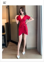 ナイトクラブの女性のナイトクラブのオーバーオールセクシーなローカットディープVネックネクタイウエスト薄い半袖ドレス micat12322676465