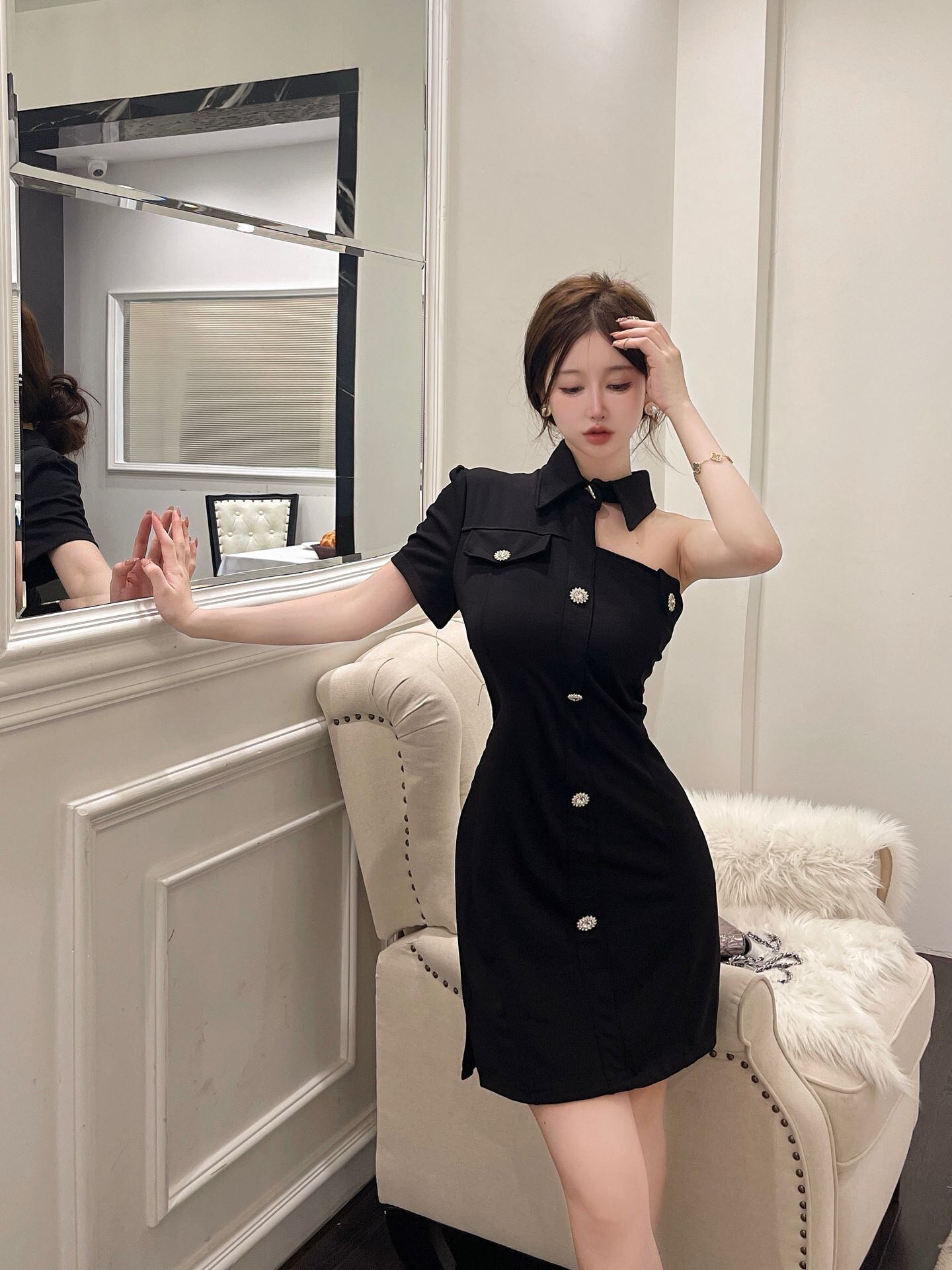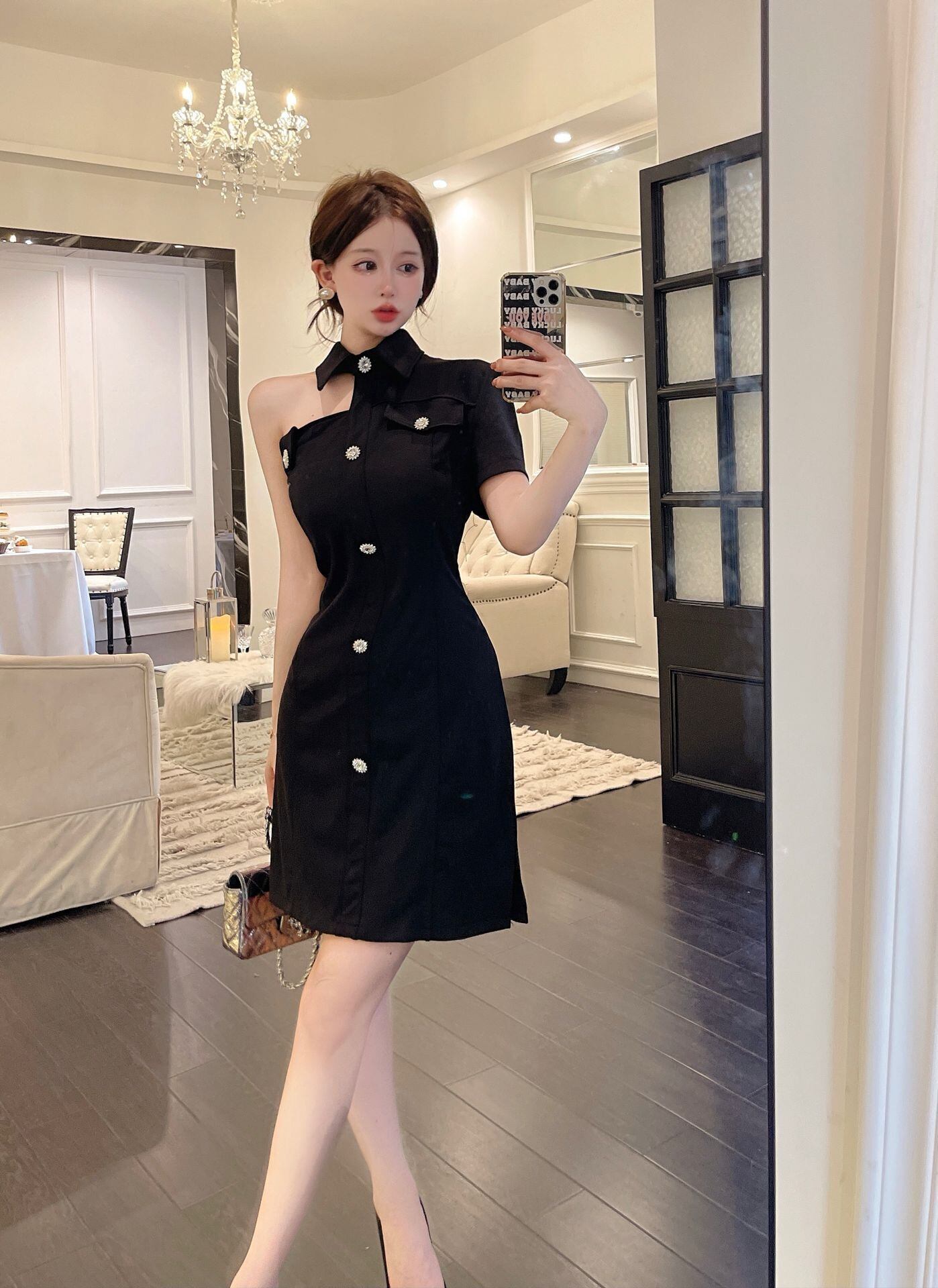 フランスのヘップバーンスタイルのリトルブラックドレス micat77641152481