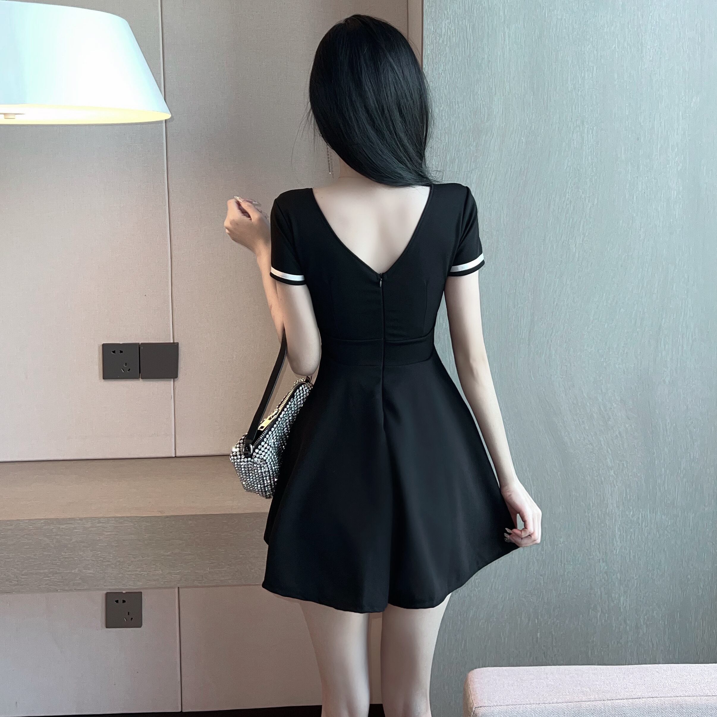 ナイトクラブ女性のナイトフィールド技術者オーバーオールナイトクラブセクシーなローカットVネックネイビーウィンドウエストスリムドレス micat70153892123