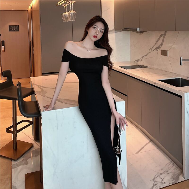 2022年の新しい女性の夏のロイヤルシスタースタイルのセクシーな中空の背中の開いたミドル丈のワンショルダードレス micat53714972243