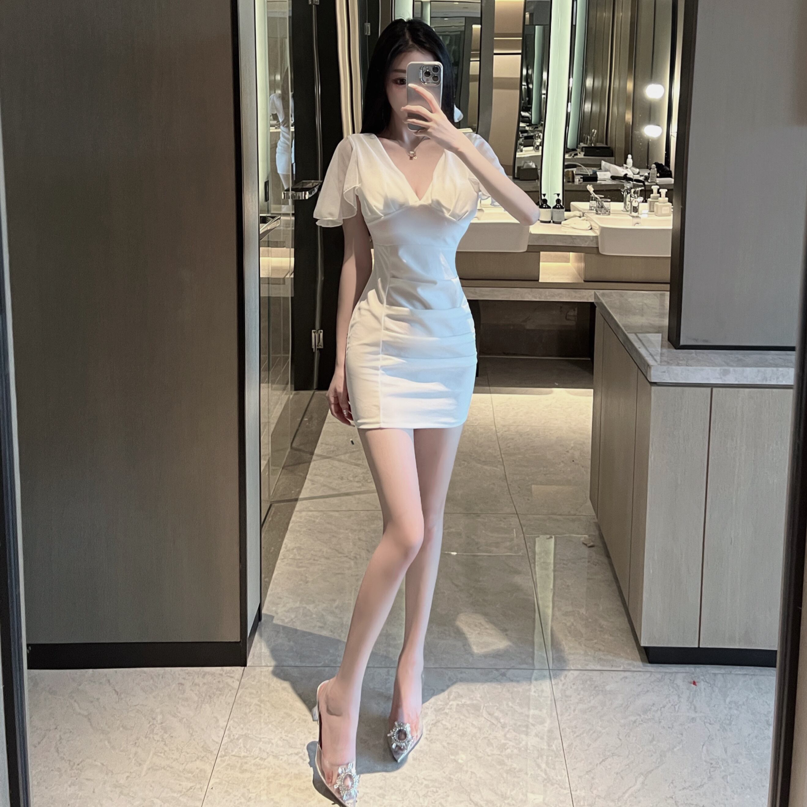 ナイトクラブレディースナイトクラブシニアセンステクニシャンオーバーオールローカットディープVネックスーパーフェアリートランペットスリーブドレス micat43826570518
