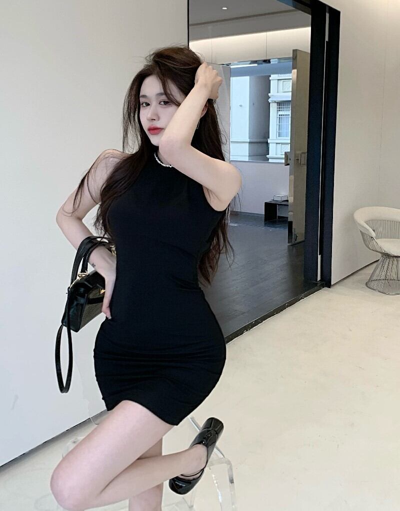 Aとsyの小さな黒いスカートの女性の夏の短いスタイルの中空の背中の開いたセクシーなノースリーブのヒップドレス micat72532214076