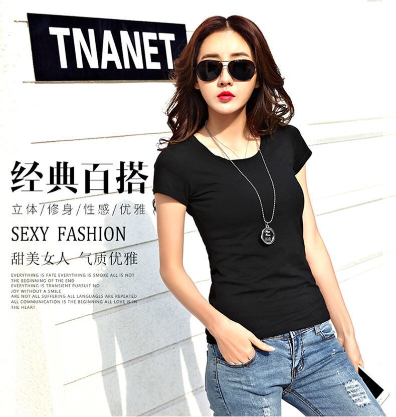 コットン半袖TシャツレディースサマーニューホワイトハーフスリーブTシャツボトミングシャツラウンドネックスリムスリムトップ qmn39669472014