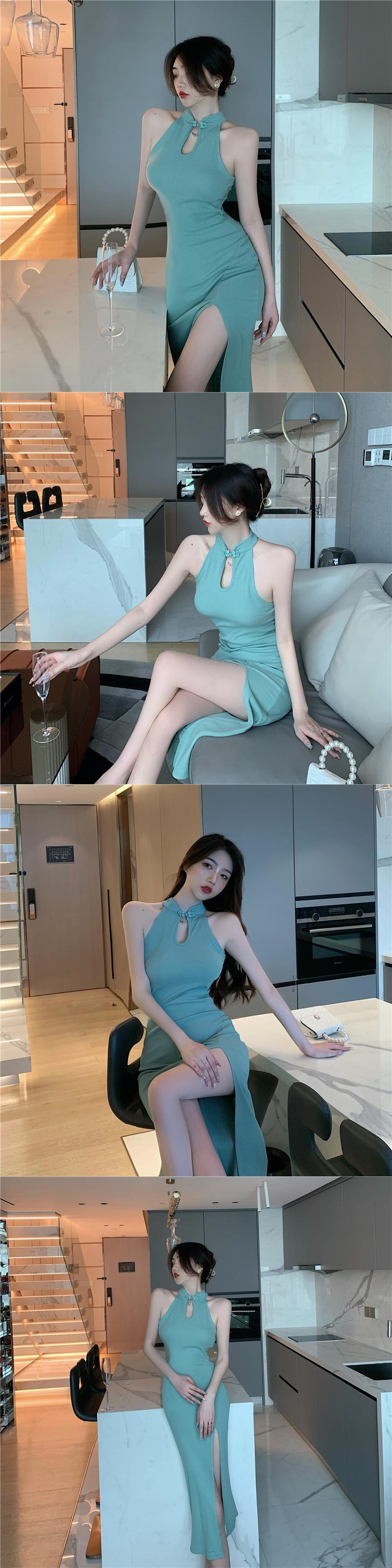 改良されたチャイナドレスのイブニングドレス女性の毎日の気質若いセクシーなノースリーブミドル丈オフショルダーホルタードレス micat3272636973