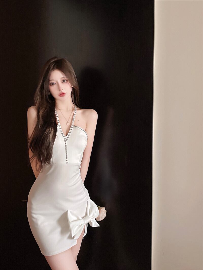 フランスの小さなドレススカートライトラグジュアリーニッチハイエンドレディース気質ネイルドリルセクシーなショートストラップレスホルタードレス micat51939043088
