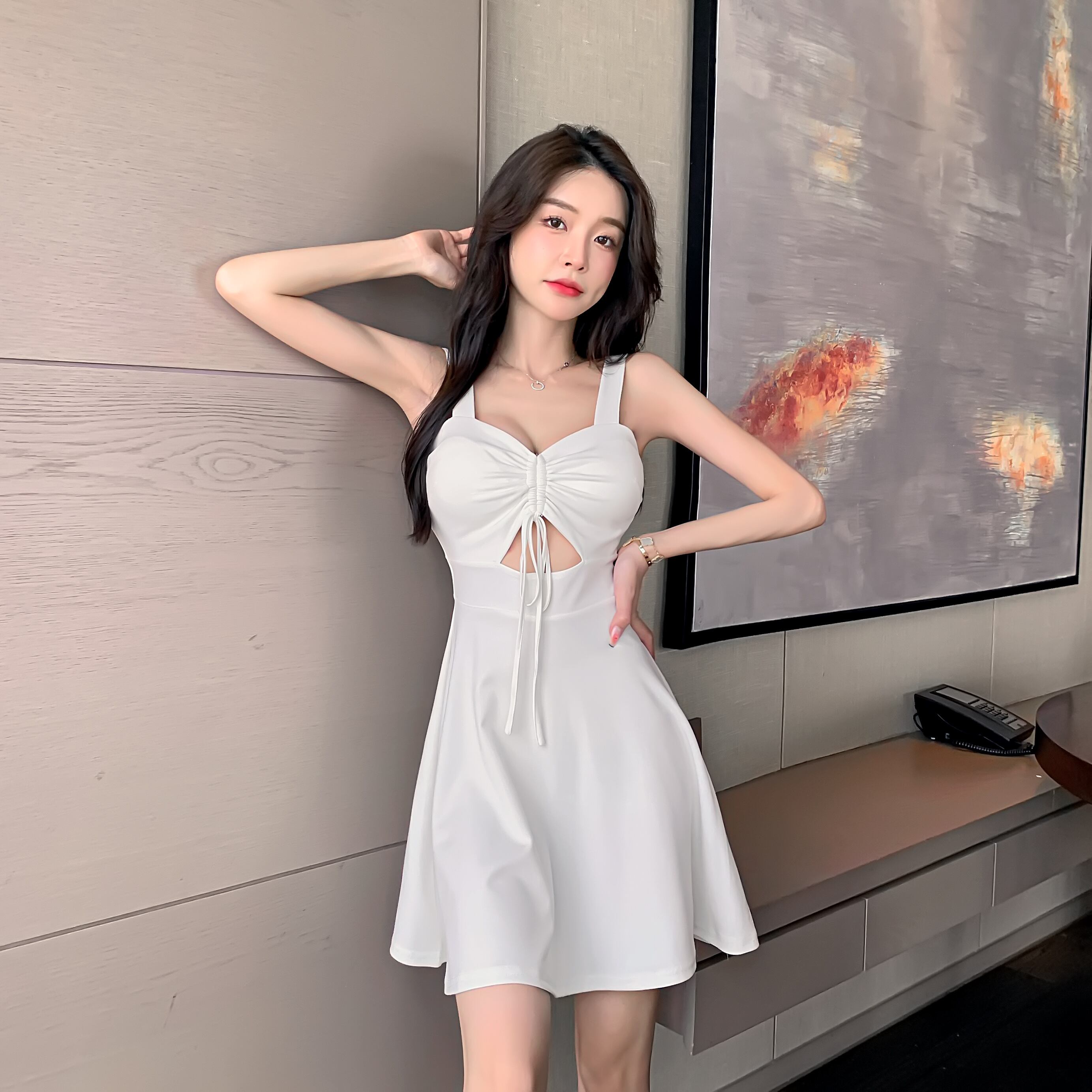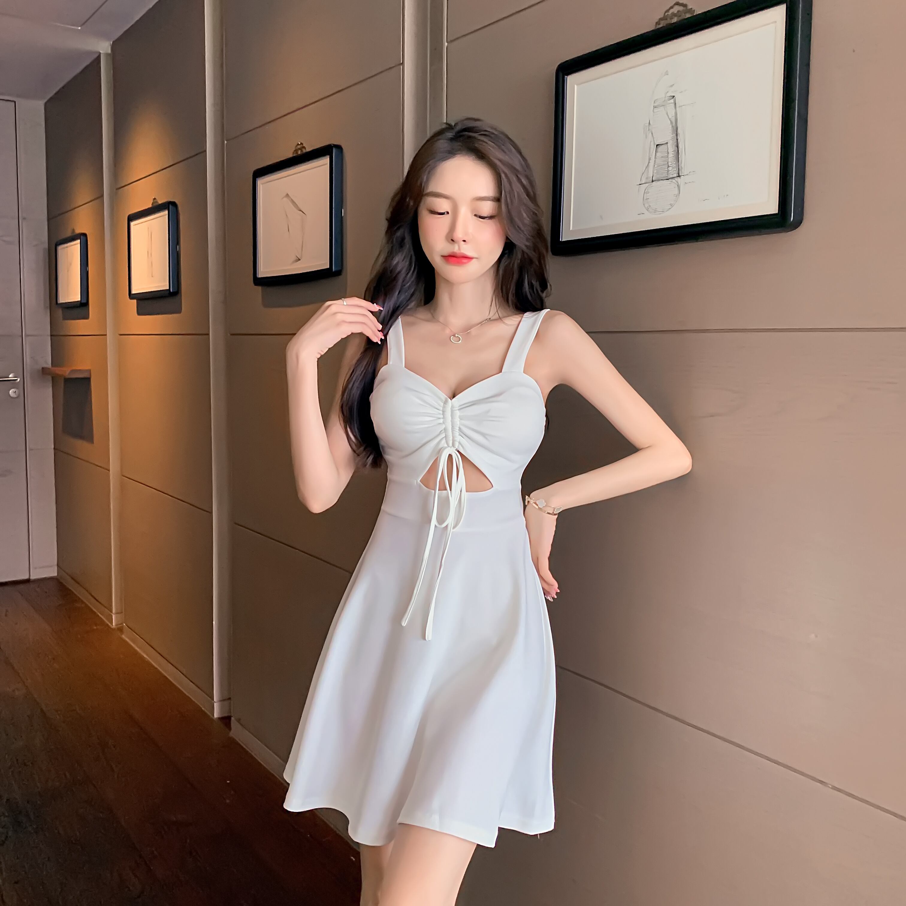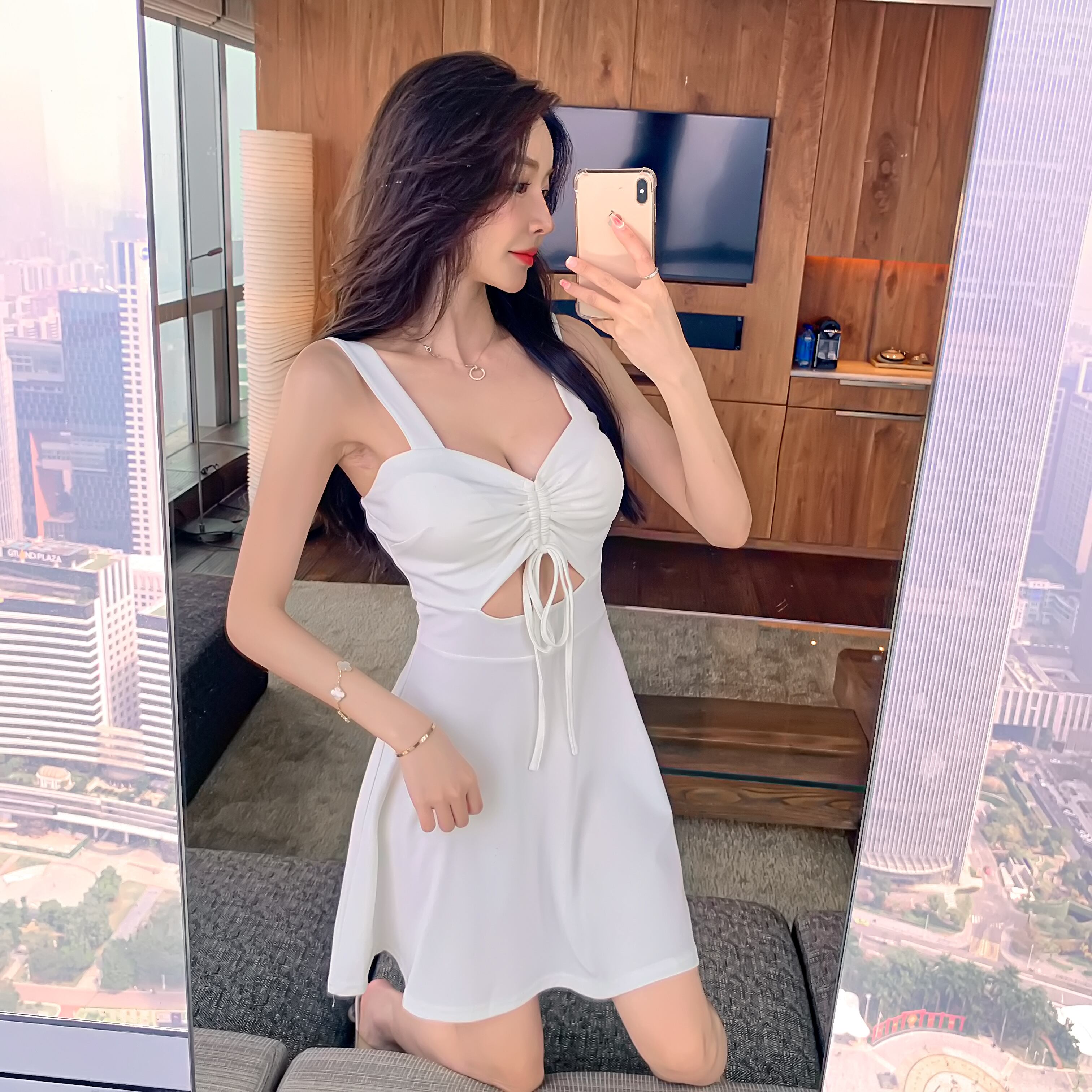 ナイトクラブの女性のナイトクラブの気質セクシーなローカットの深いVネックの中空ストラップは薄いふわふわのサスペンダードレスを示しています micat81939155002