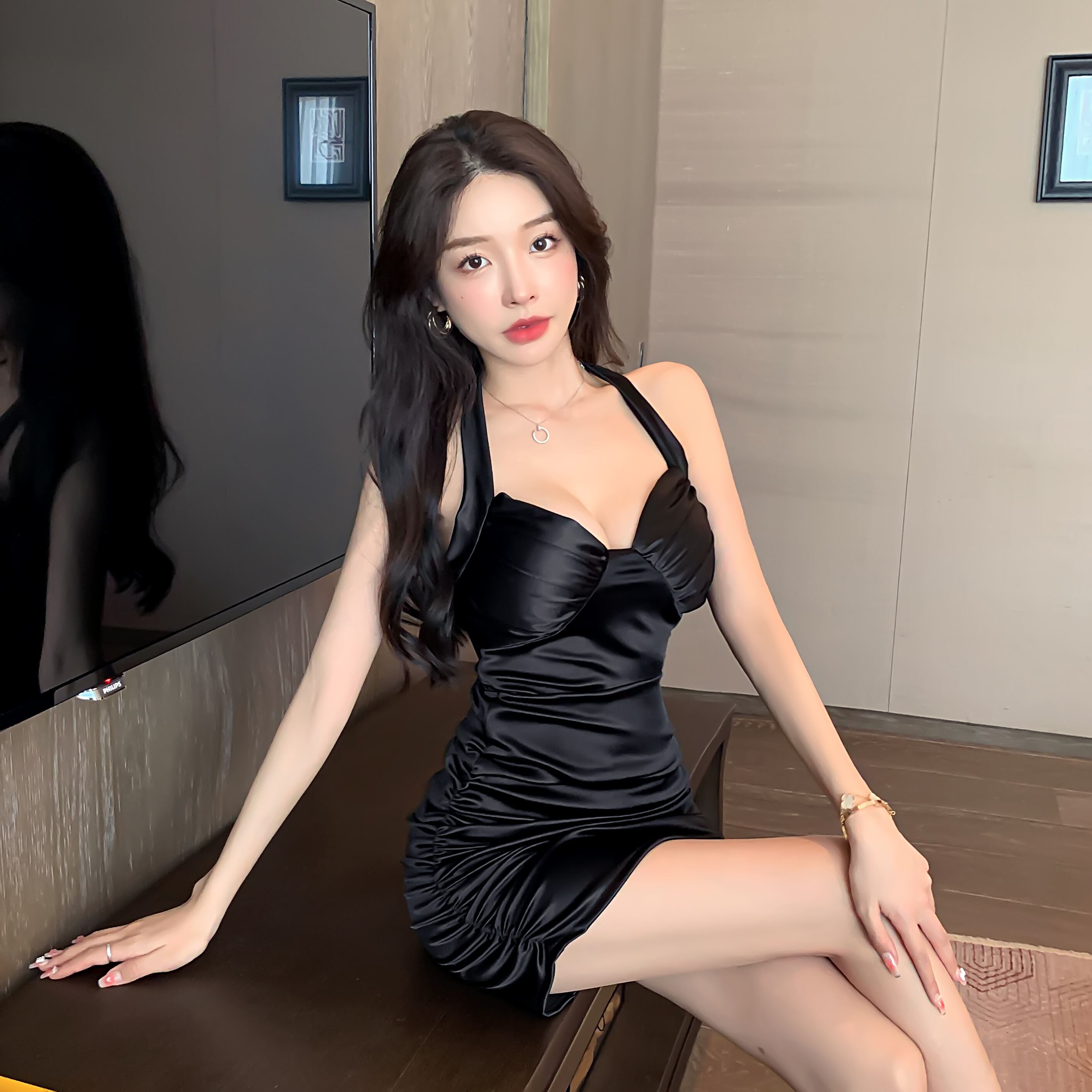 ナイトクラブレディースナイトクラブハイエンドオーバーオールセクシーなローカットディープVネックサテンホルタードレス micat81311846177
