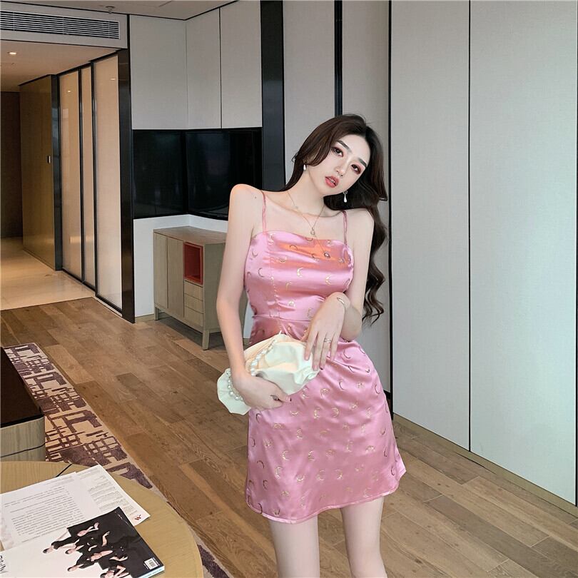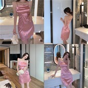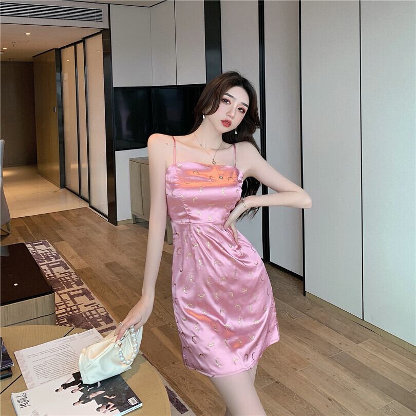 ナイトクラブ女性のナイトクラブハイエンド気質ショートドレス光沢のあるブロンズセクシーなサスペンダードレス micat8025044729