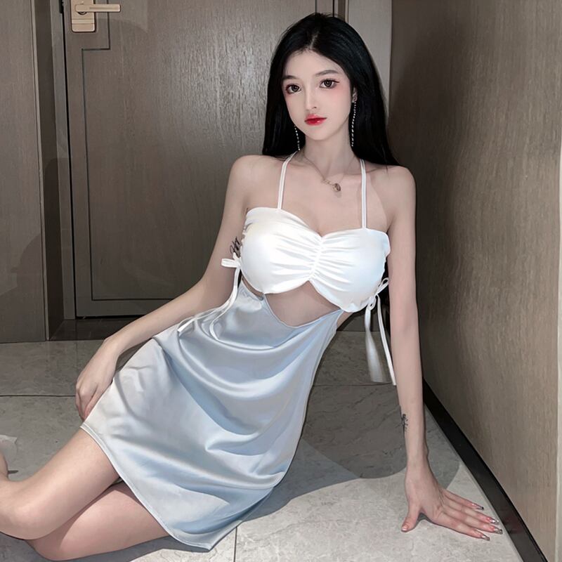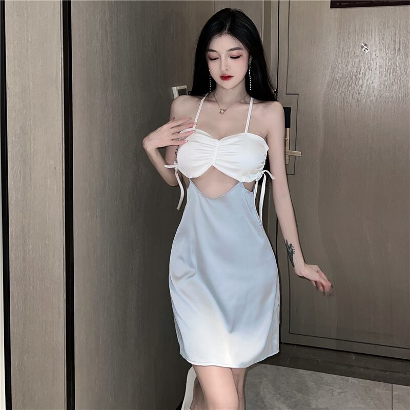 ナイトクラブの女性のナイトクラブの技術者の作業服のナイトドレスセクシーな中空の偽のツーピースの背中の開いたサスペンダードレス micat66025402245