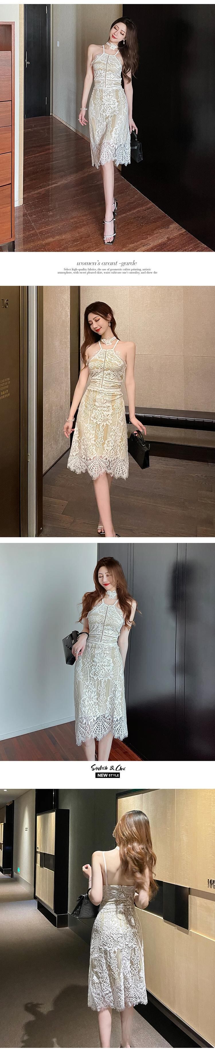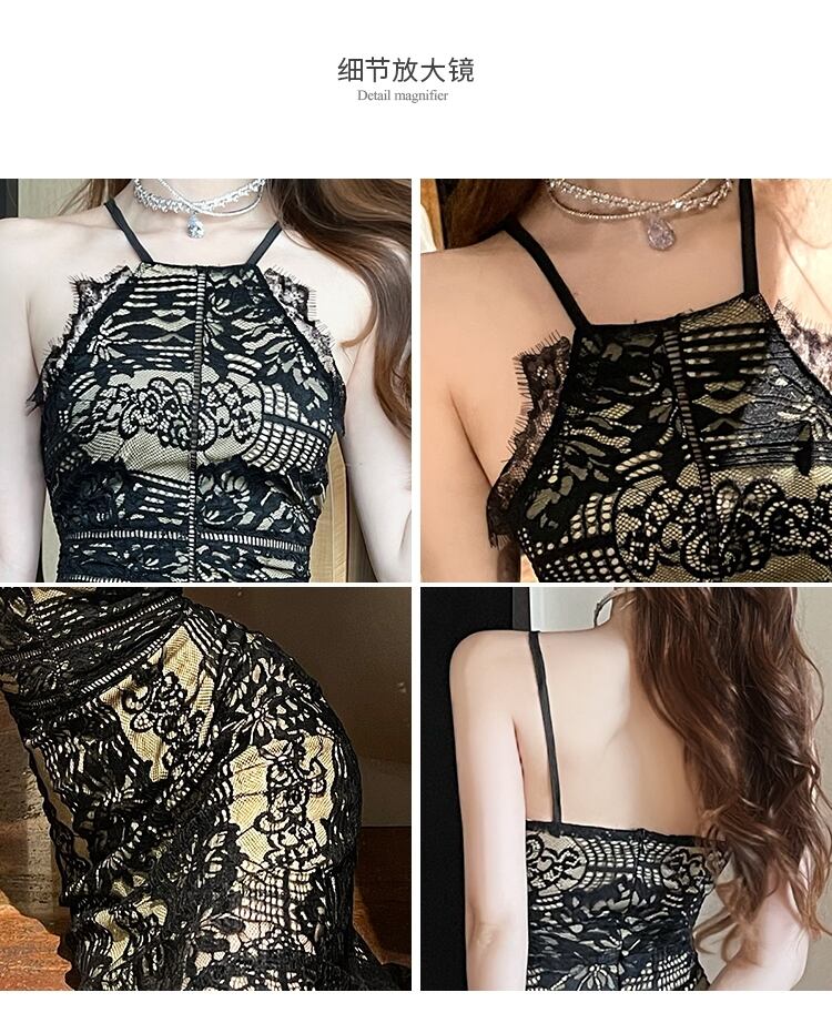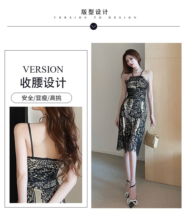 フランスのレトロなイブニングドレススカートライトラグジュアリーニッチハイエンド気質セクシーなオフショルダーミドル丈レースサスペンダードレス micat7680816028