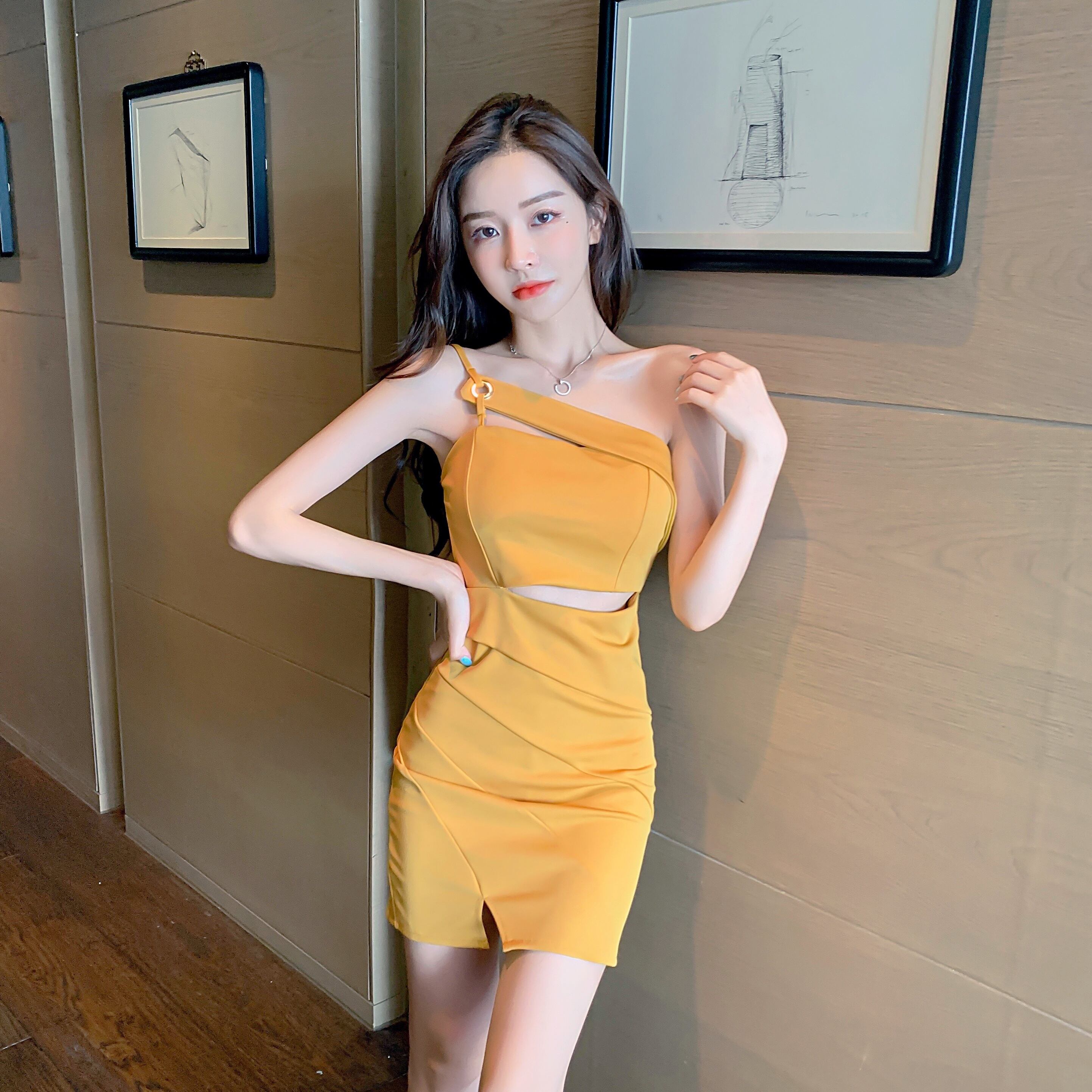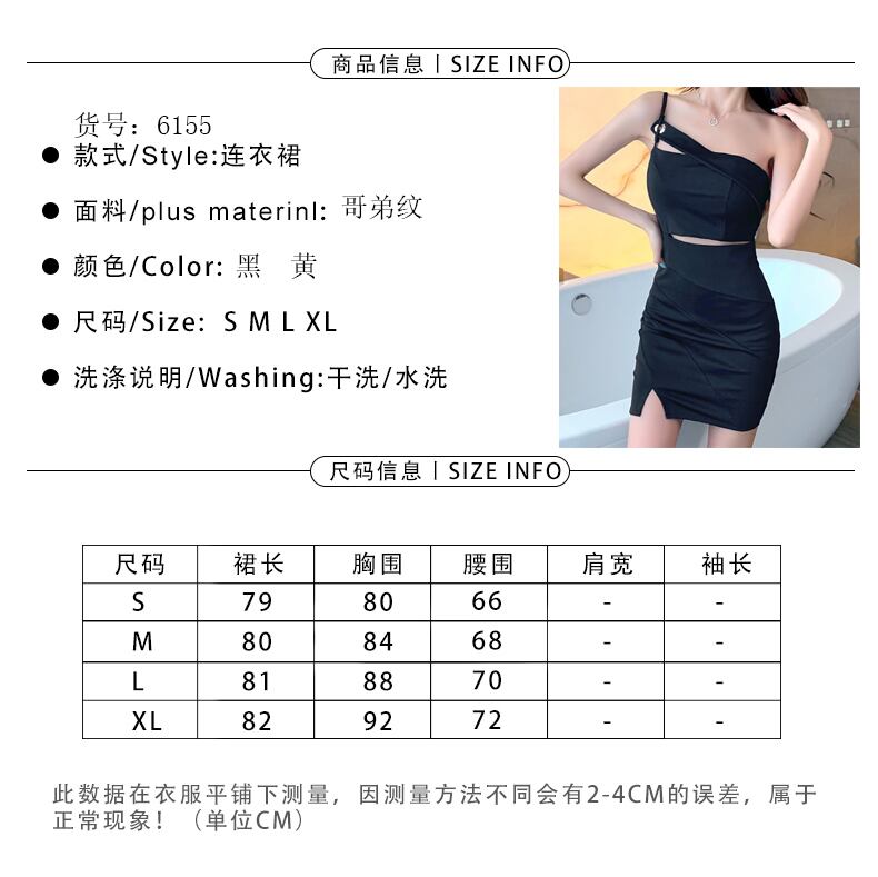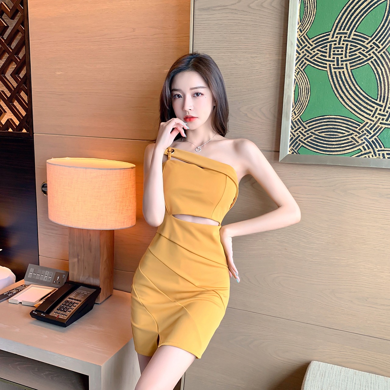ナイトクラブレディースナイトクラブスモールドレスショート気質セクシー斜めカラーストラップレスショルダーバッグヒップシングルショルダーストラップドレス micat16875964303