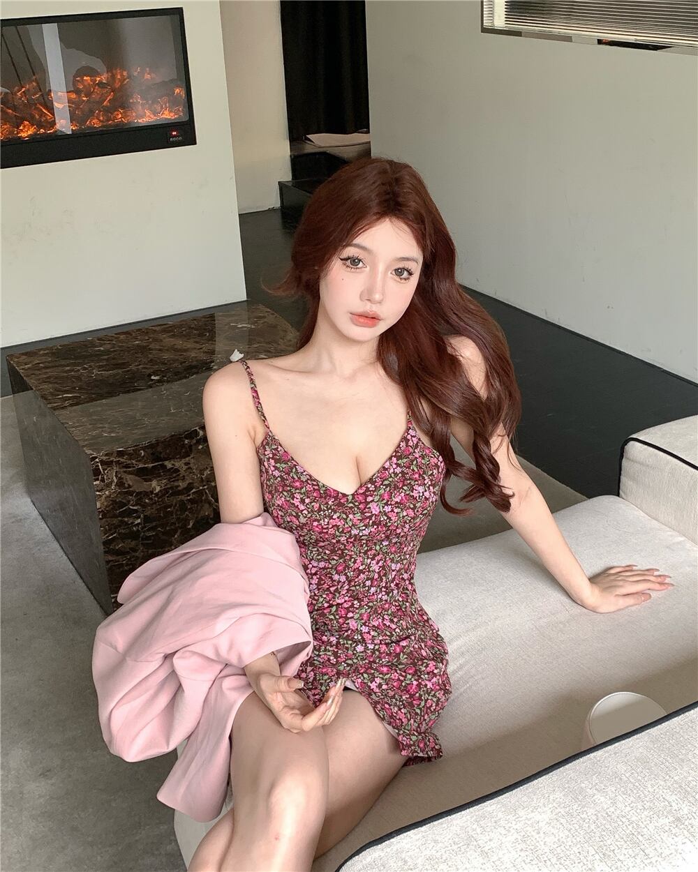 ナイトクラブ婦人服純粋な欲望スタイルレトロフローラルセクシーローカットディープVネックバッグヒップスプリットサスペンダードレス micat33798006917