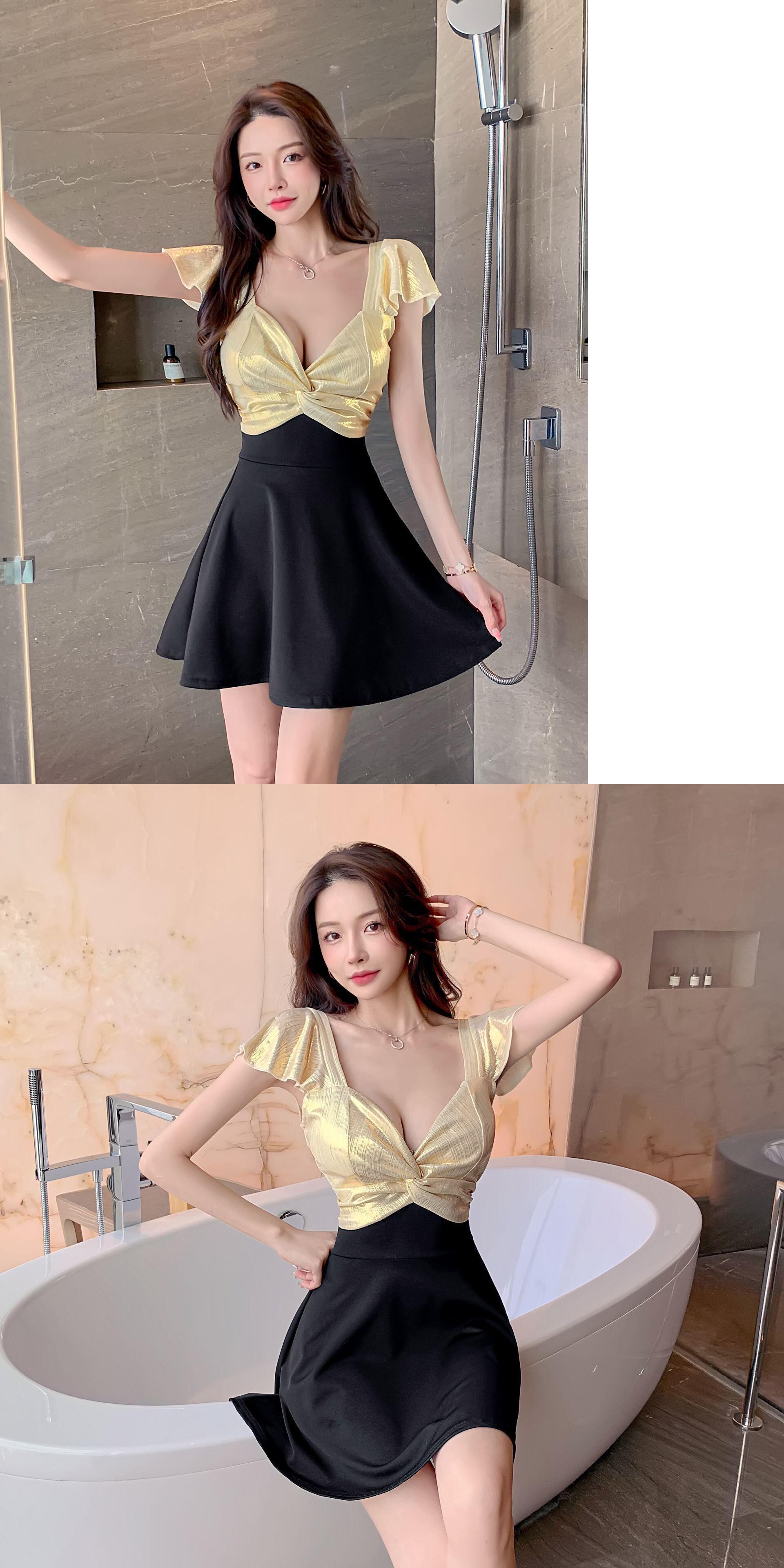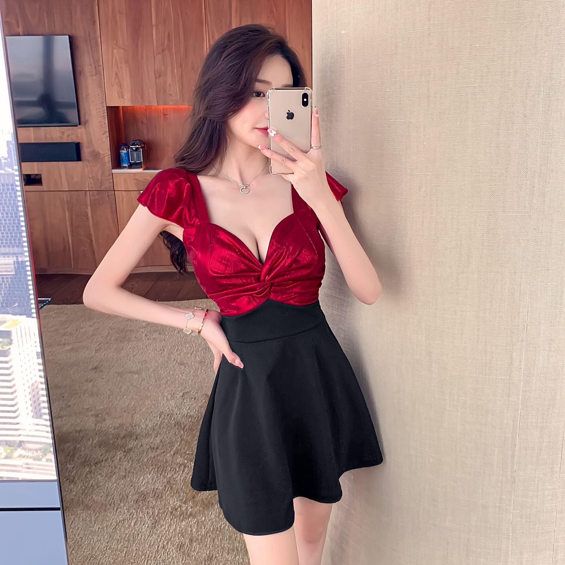 ナイトクラブの女性の作業服光沢のあるセクシーなローカットディープVネックタイトバッグヒップスカートナイトクラブドレス micat18099362235